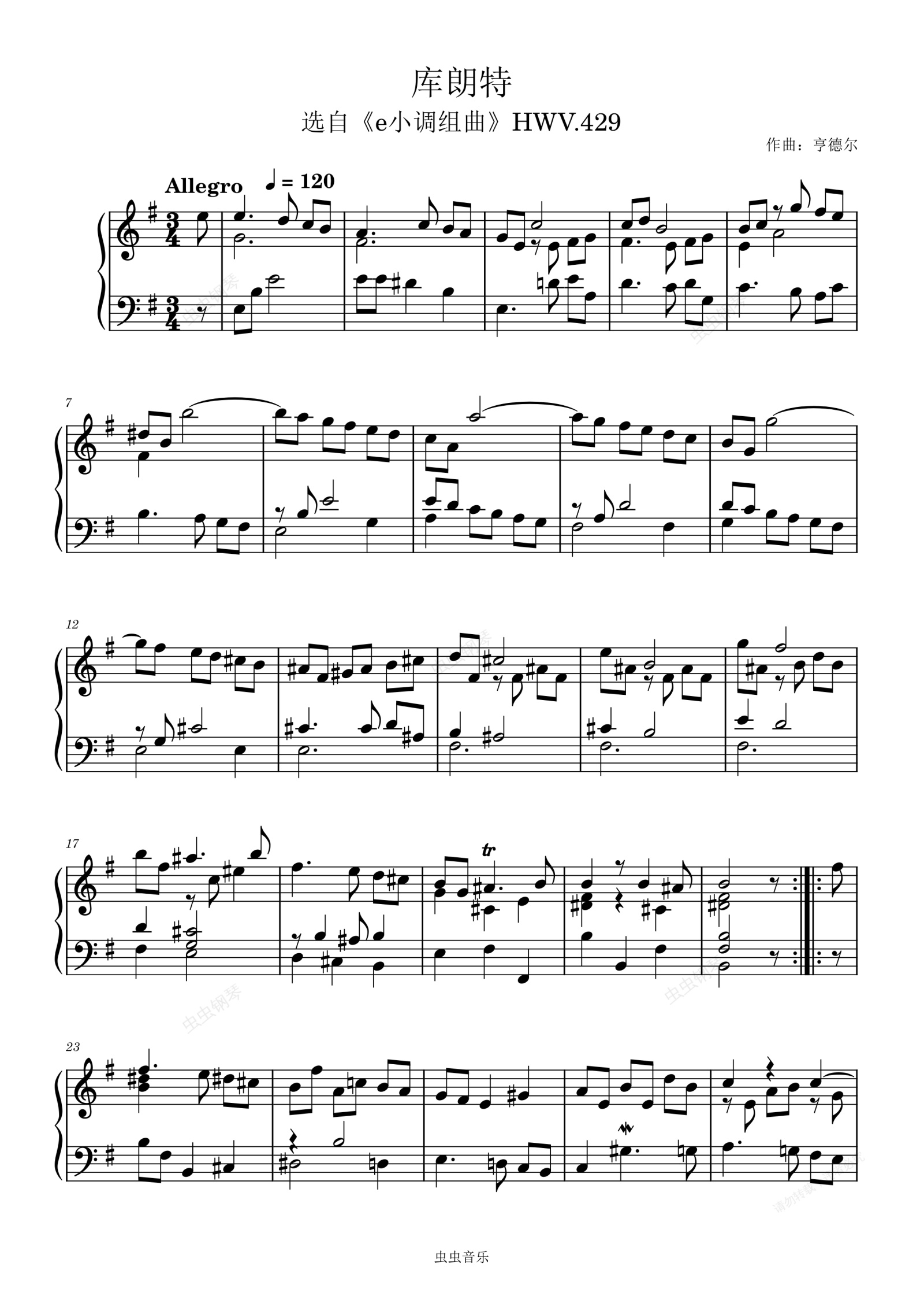 钢琴谱:七级 3-2.库朗特 选自《e小调组曲》HWV.429