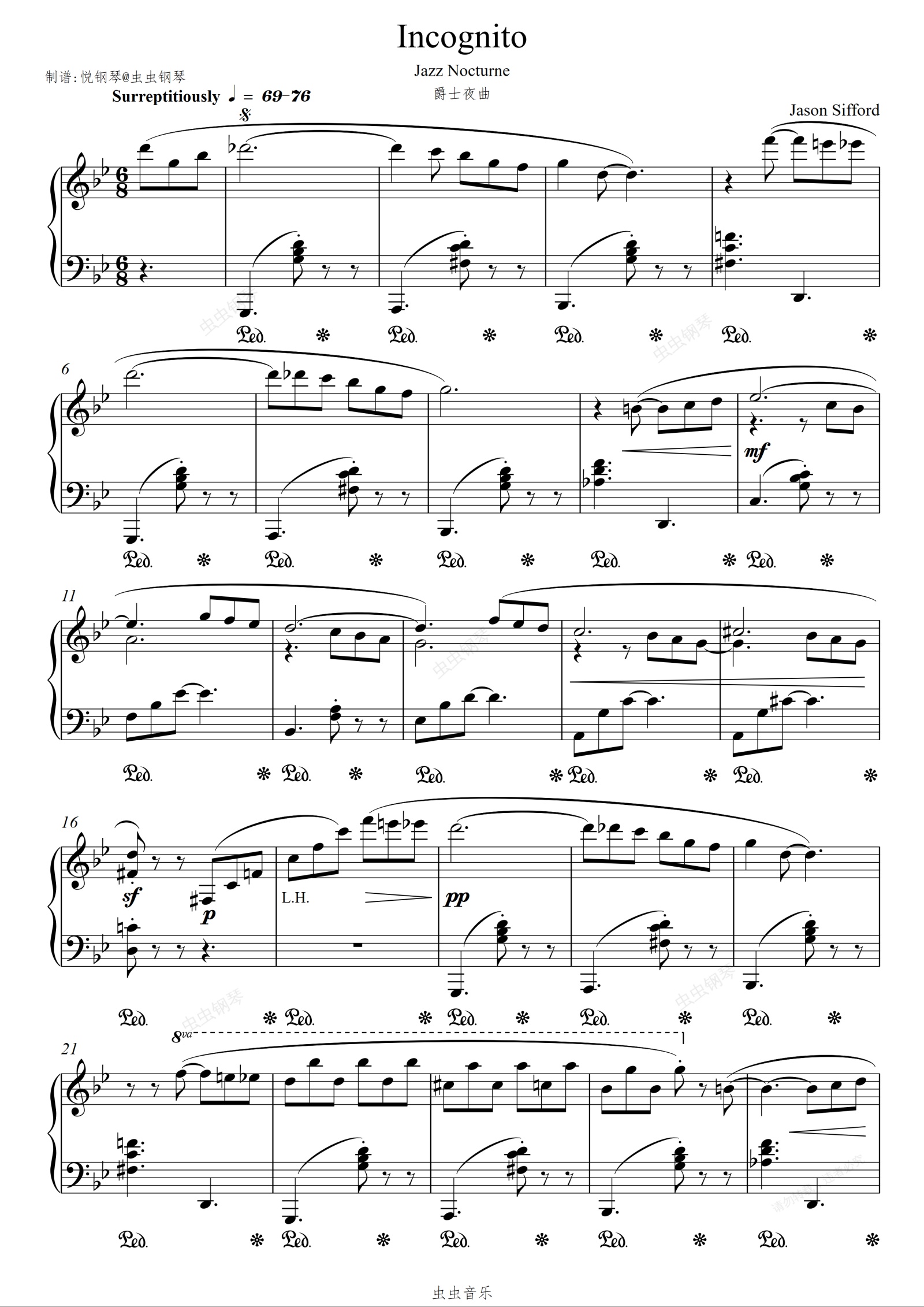 钢琴谱:爵士夜曲//Jazz Nocturne【爵士风格-抒情-唯美】