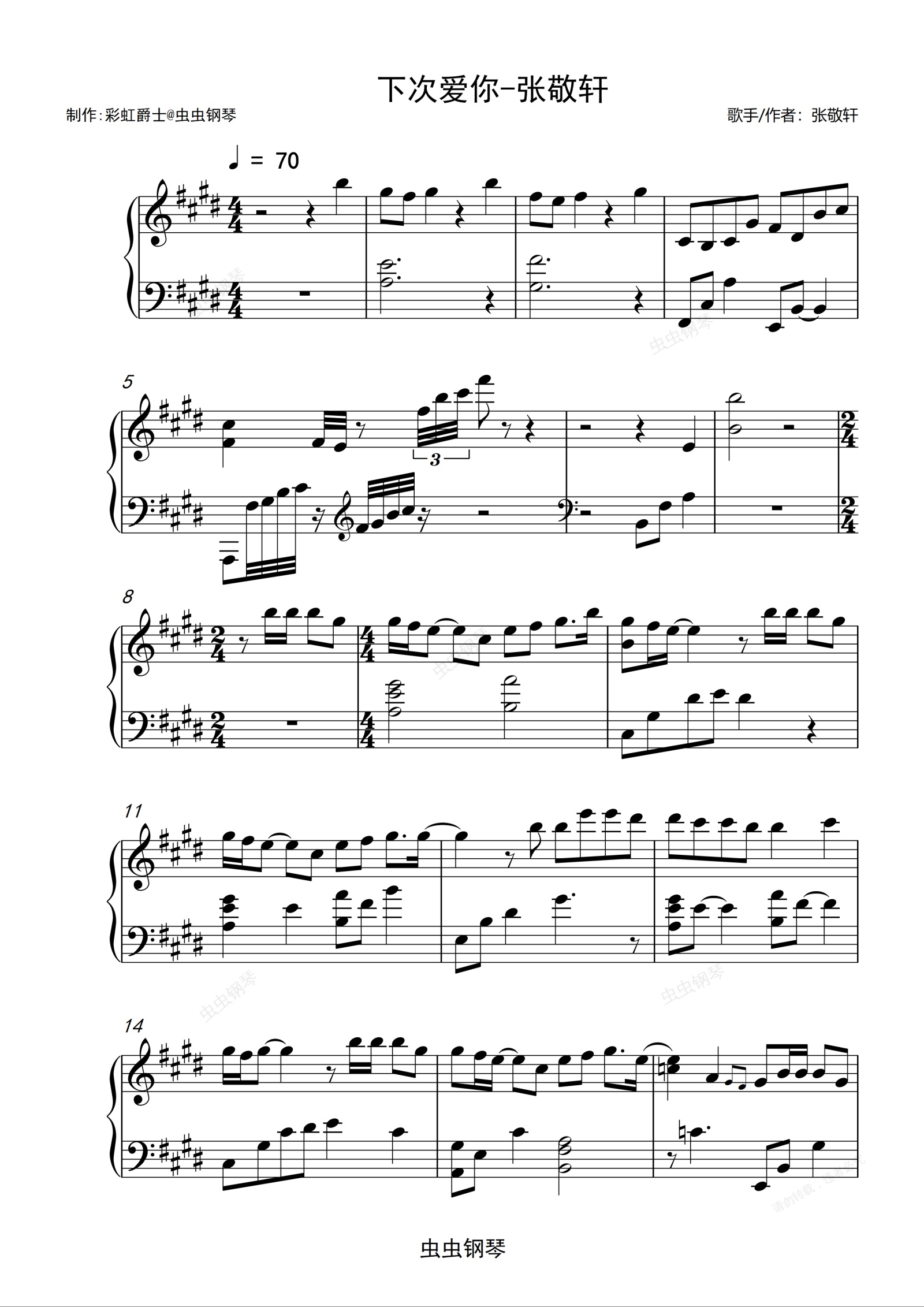 钢琴谱:下次爱你-张敬轩 五线谱 完整版