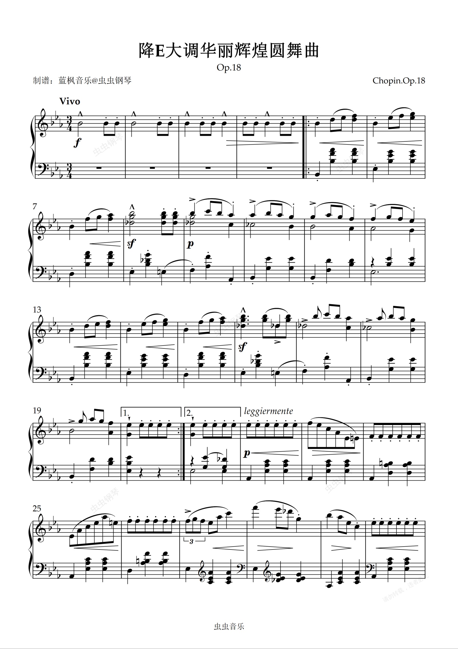 钢琴谱:降E大调华丽辉煌圆舞曲 Op.18