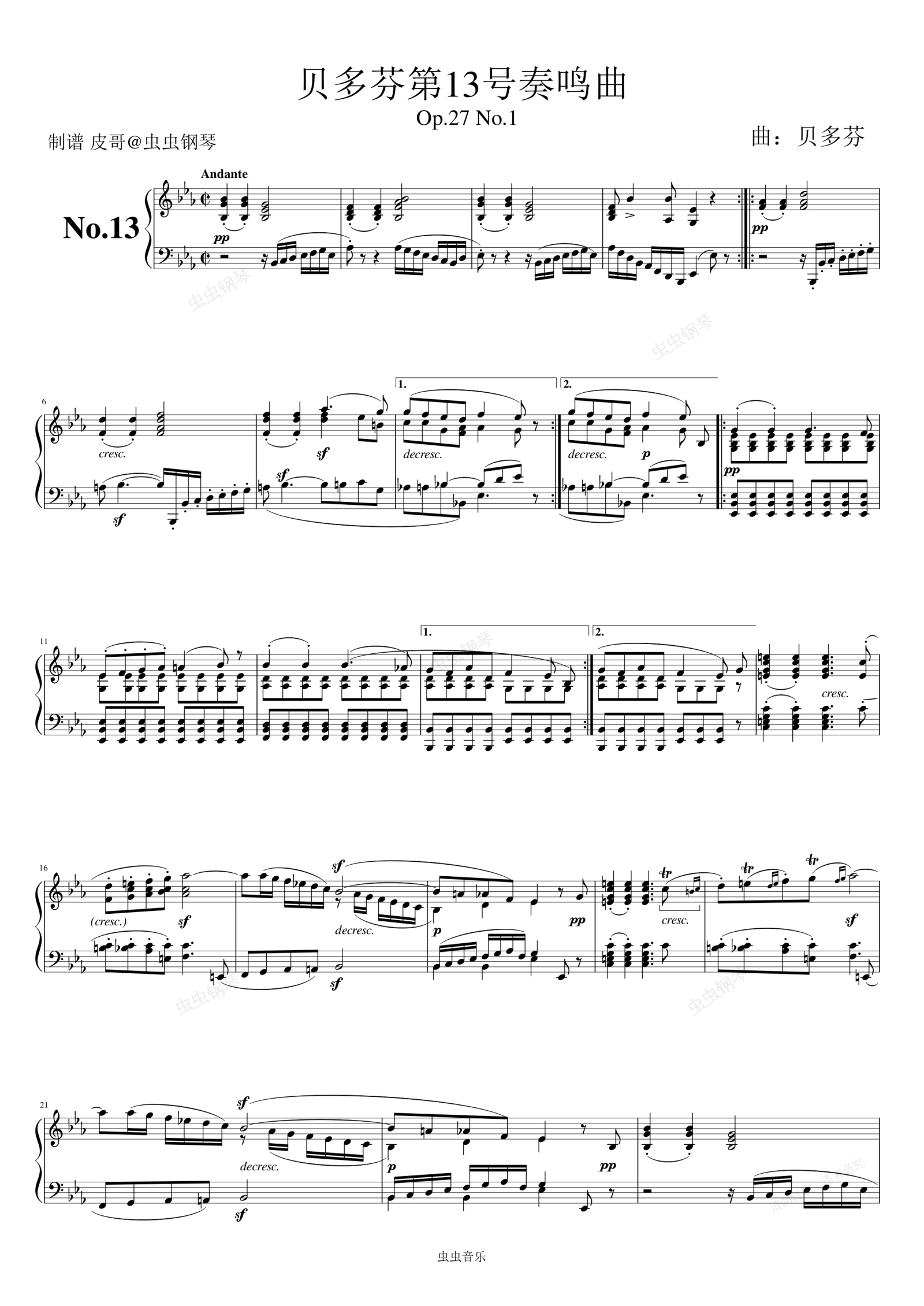 钢琴谱:贝多芬第13号奏鸣曲 降E大调 原版钢琴谱