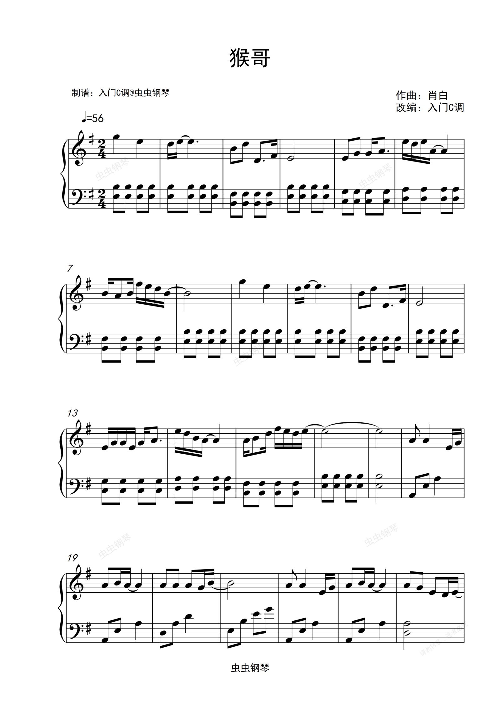 钢琴谱:《西游记》动画片主题曲《猴哥》G调简单版儿歌