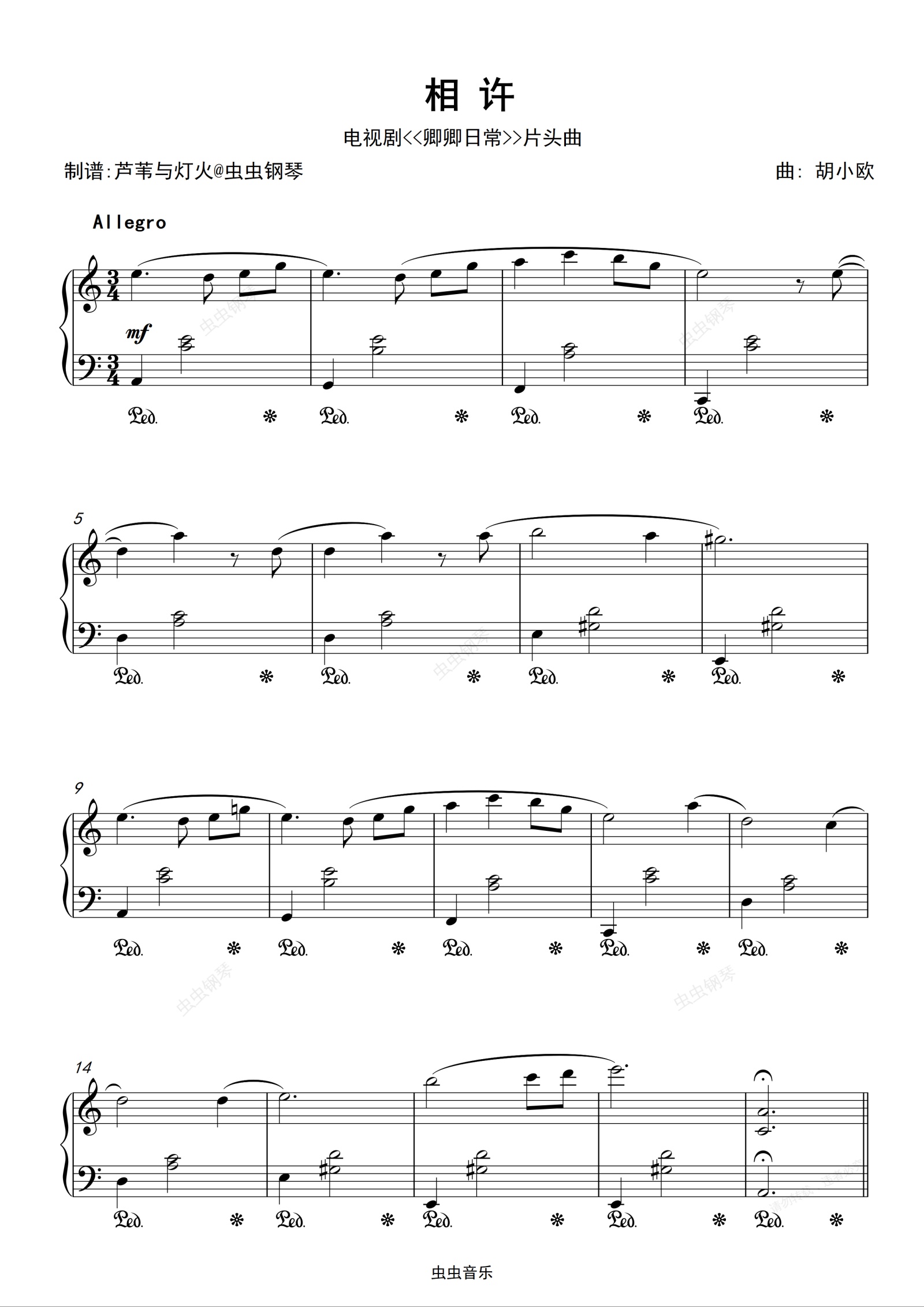 钢琴谱:相许-卿卿日常 钢琴谱 超简单 零基础 超好听的bgm