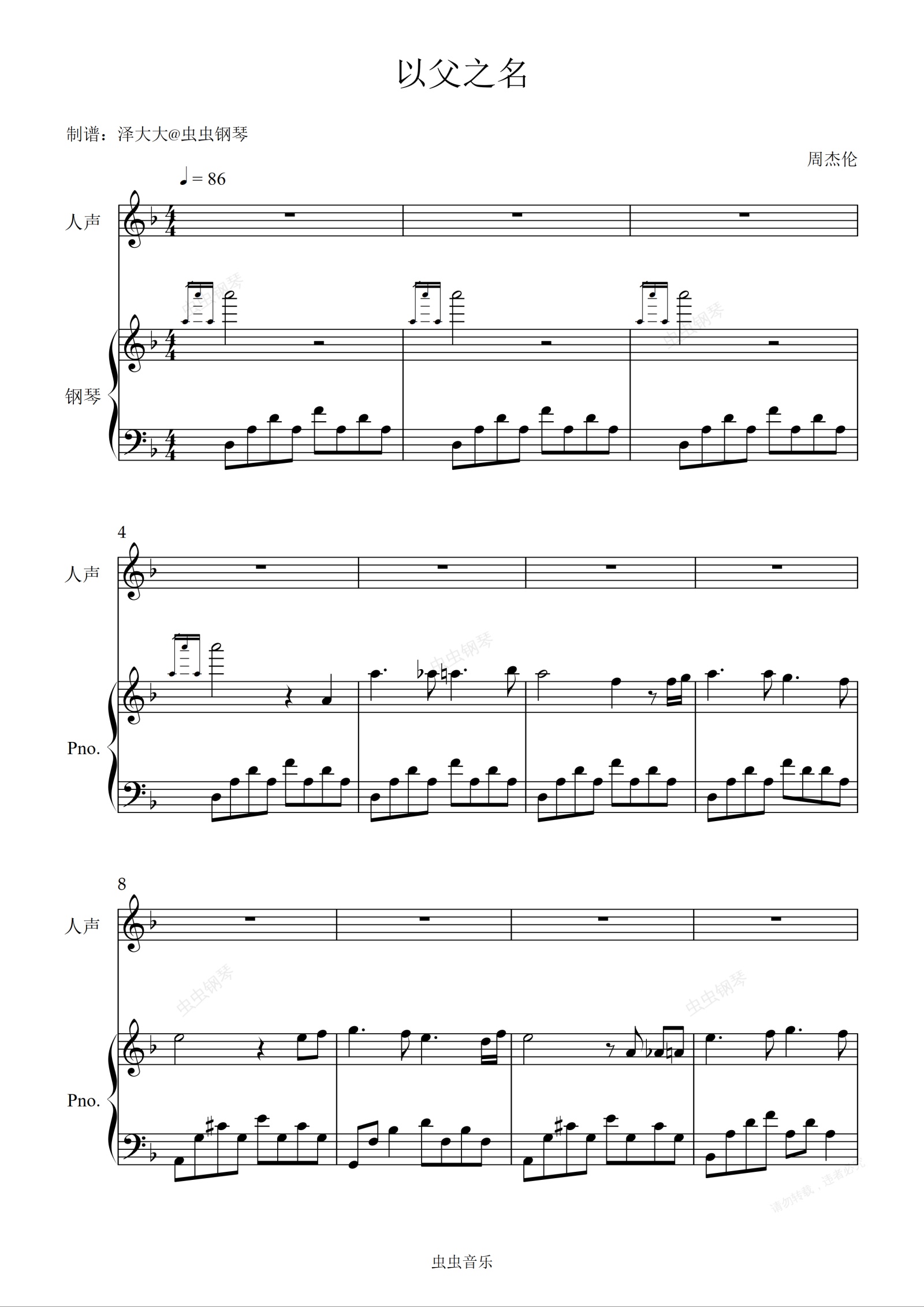 钢琴谱:以父之名【原版弹唱附词】泽大大 周杰伦