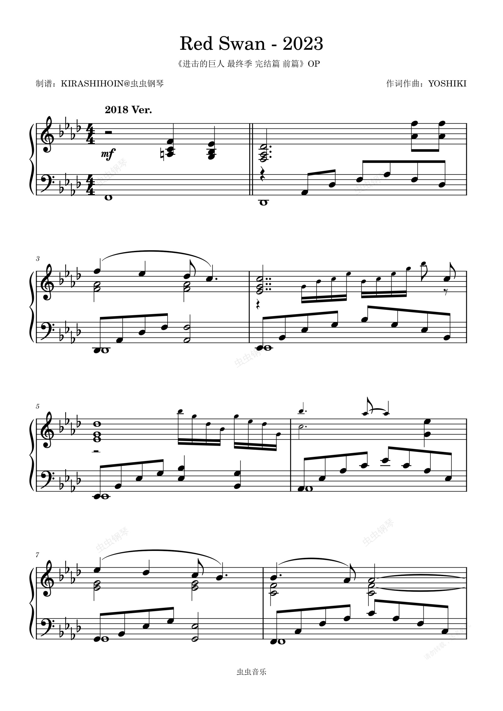 钢琴谱:Red Swan - 2023新版(《进击的巨人 最终季 完结篇 前篇》OP/片头曲)- Yoshiki /HYDE