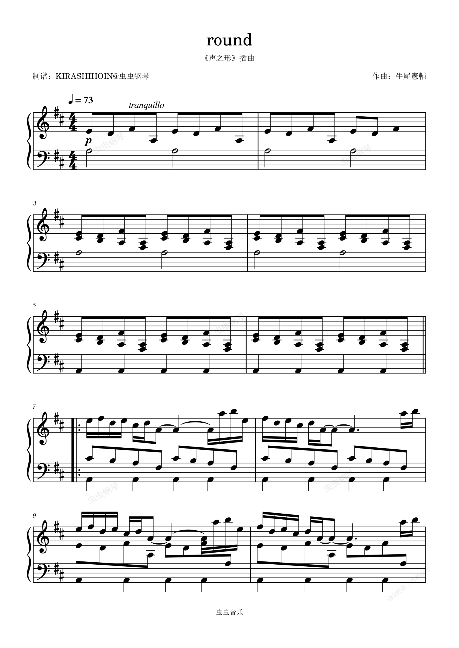 钢琴谱:round(《声之形》插曲)- 牛尾憲輔