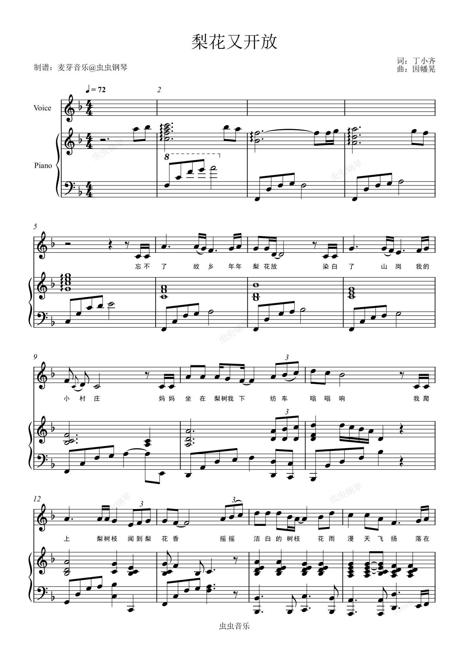 钢琴谱:梨花又开放(弹唱)