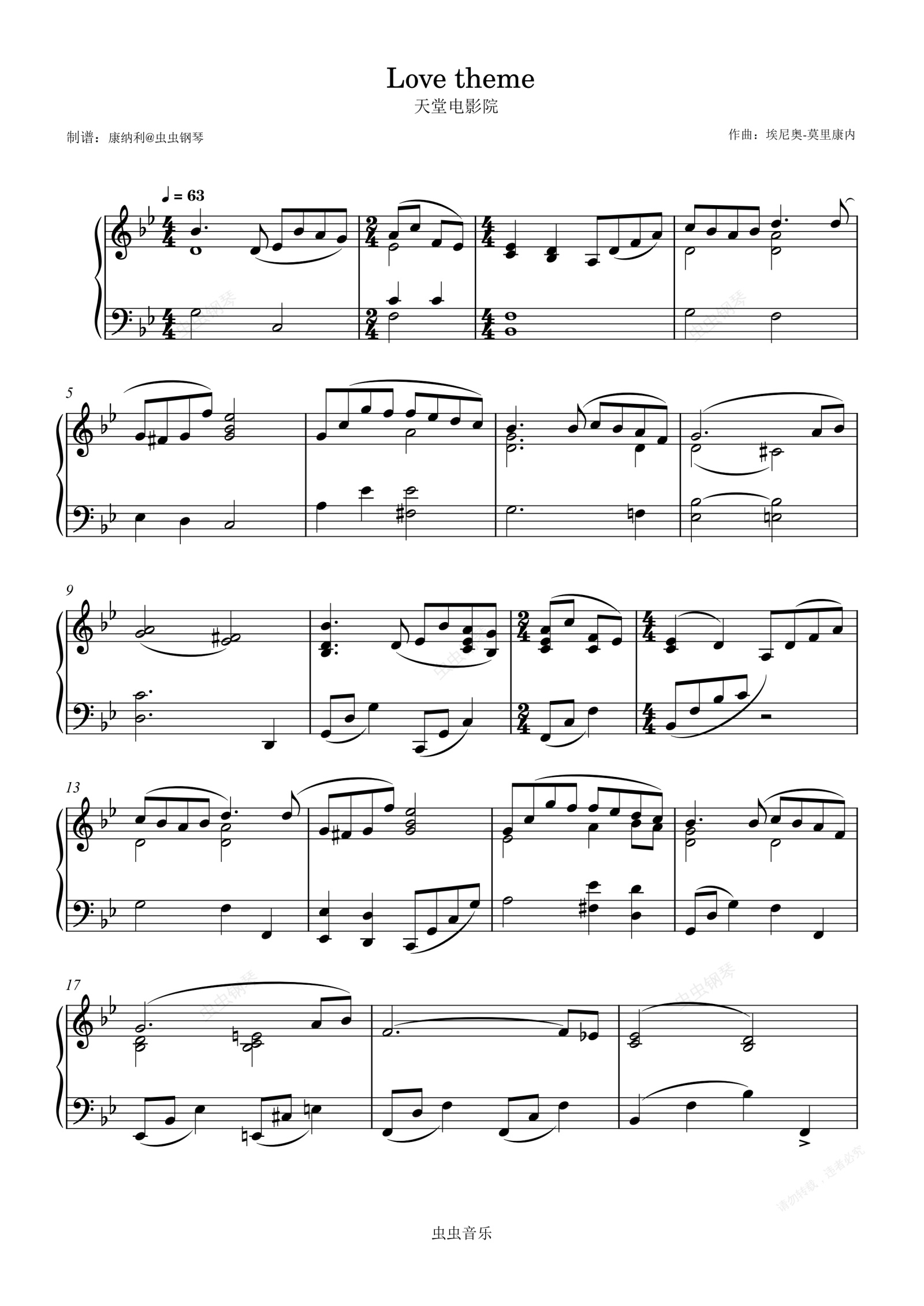 钢琴谱:天堂电影院插曲钢琴独奏版