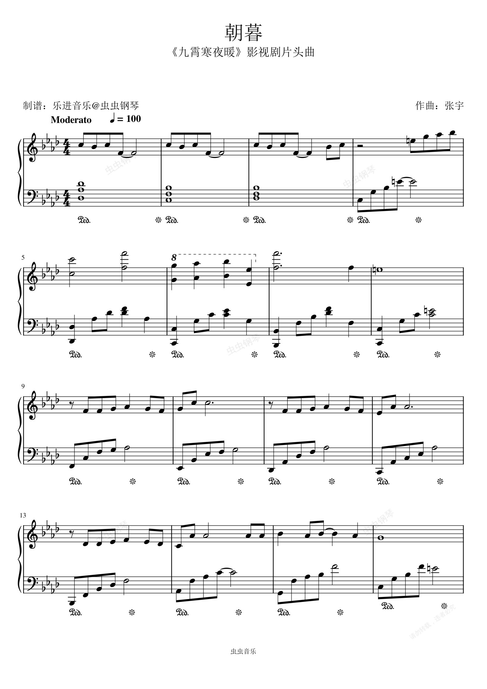 钢琴谱:《朝暮》原调还原 ,九霄寒夜暖影视剧片头曲