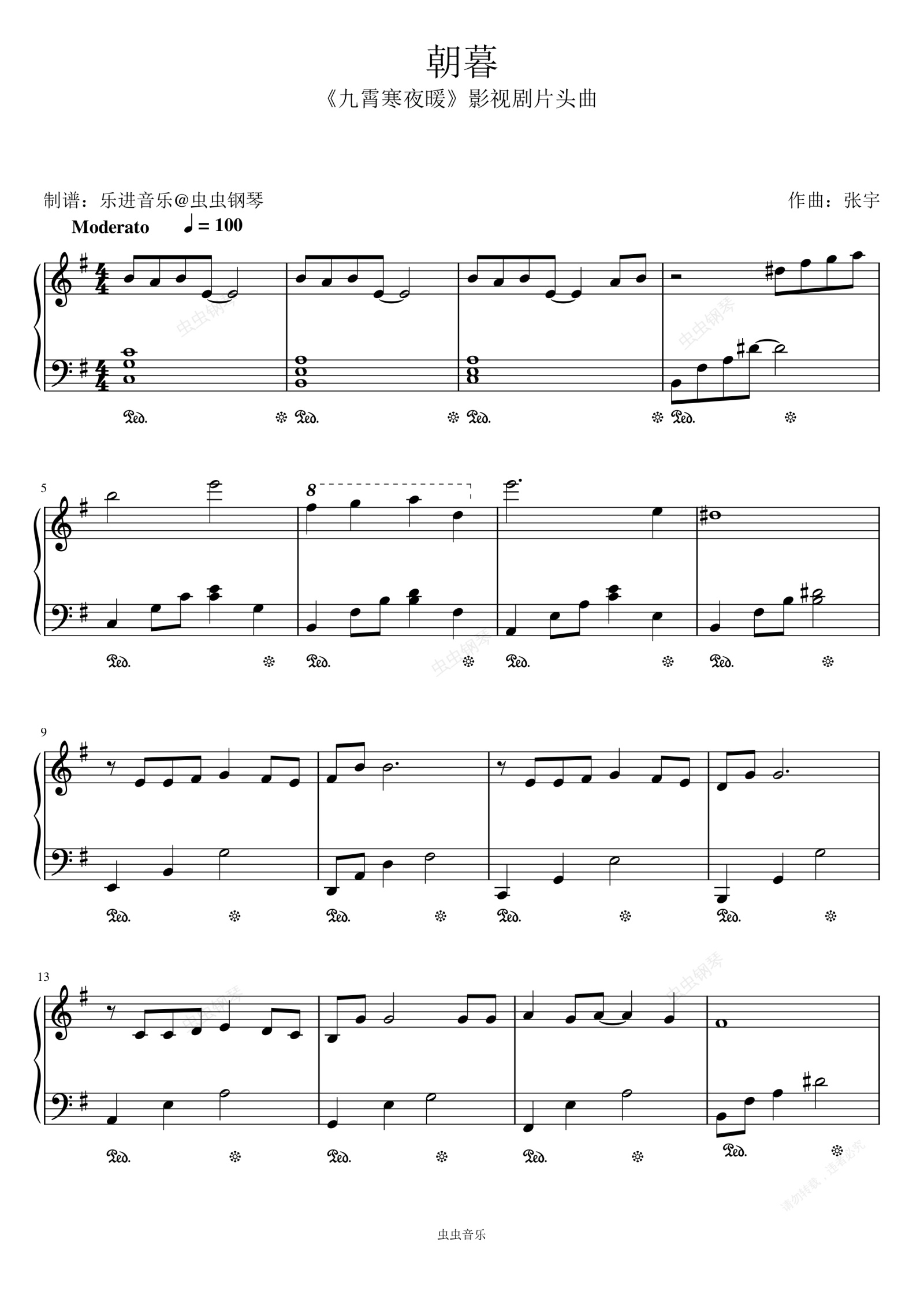 钢琴谱:《朝暮》G调简易版 九霄寒夜暖片头曲