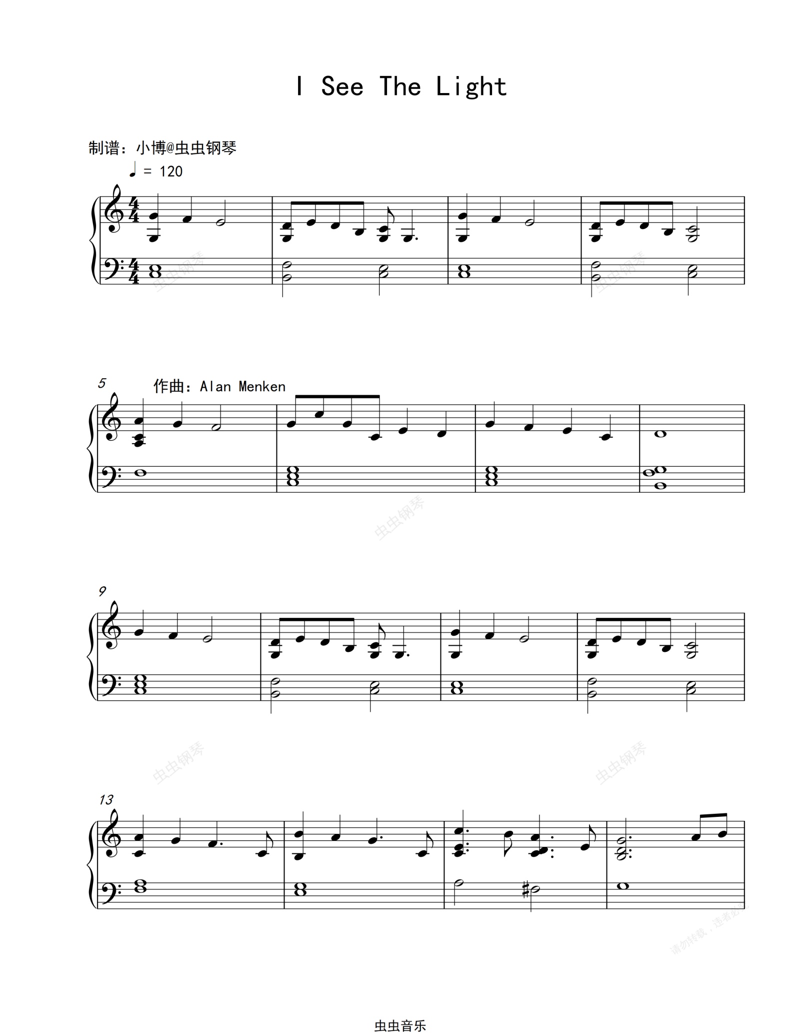 钢琴谱:I See The Light-C调简单版-Alan Menken