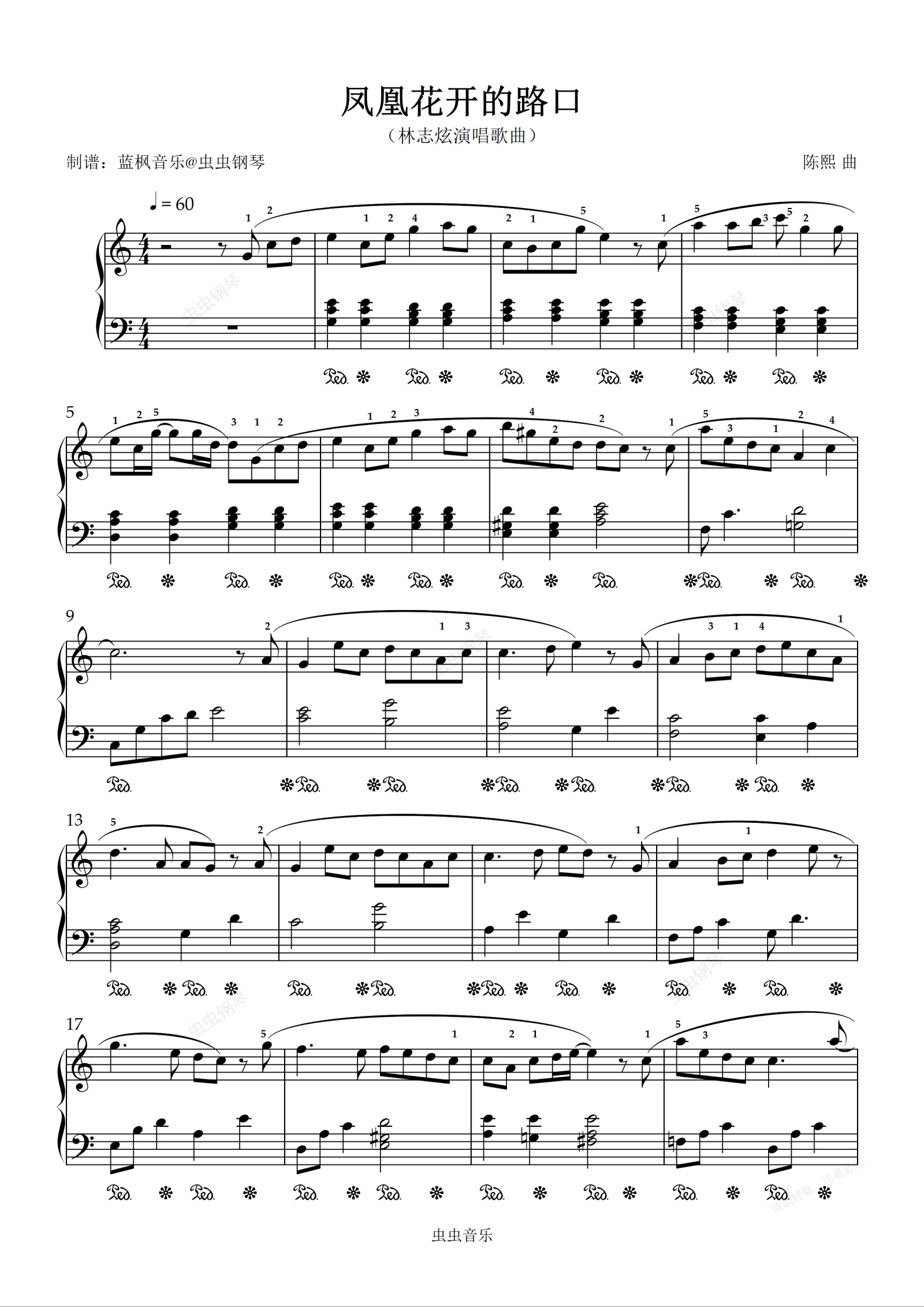 钢琴谱:凤凰花开的路口