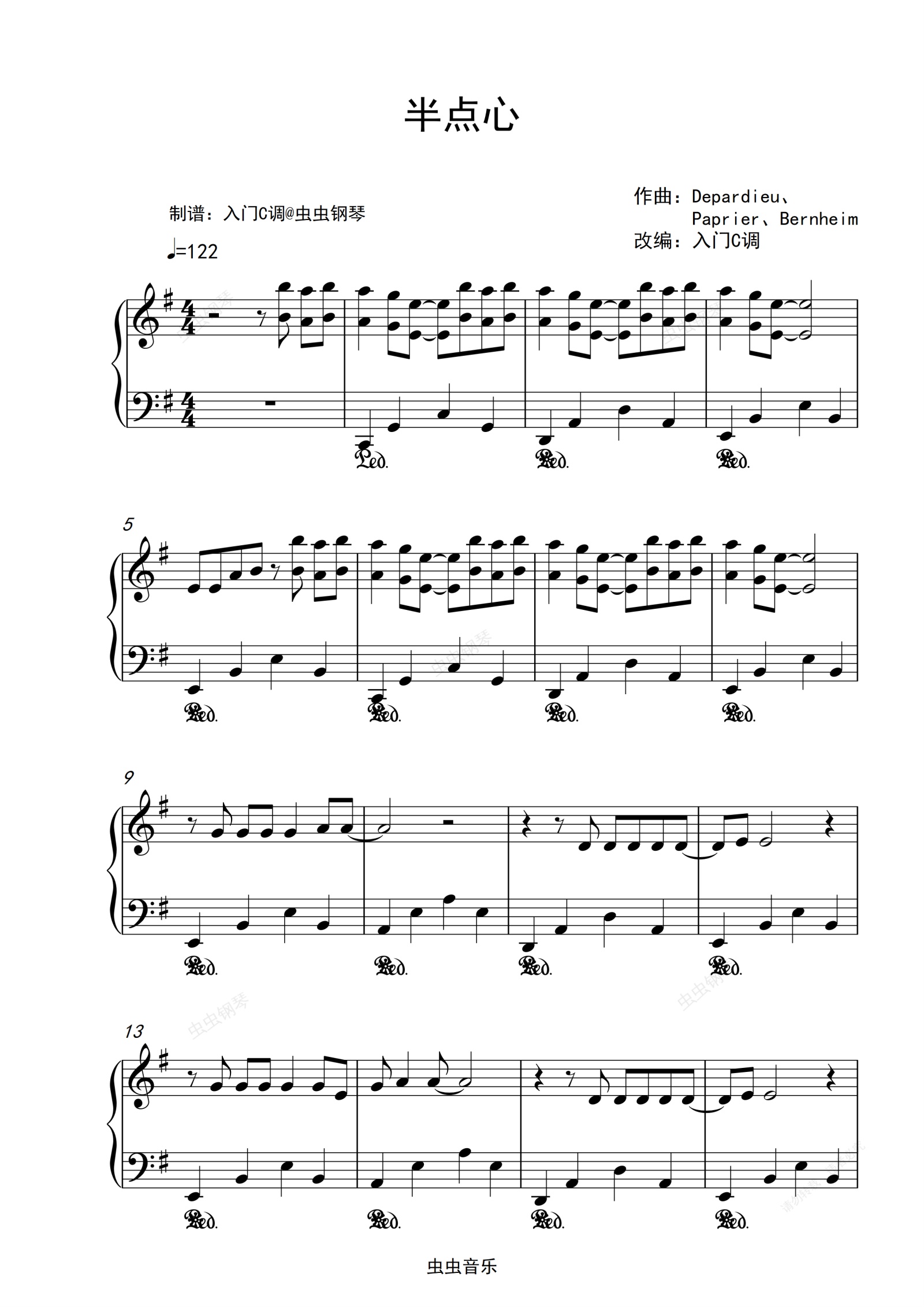 钢琴谱:经典粤语歌曲《半点心》草蜢 原调入门简单版