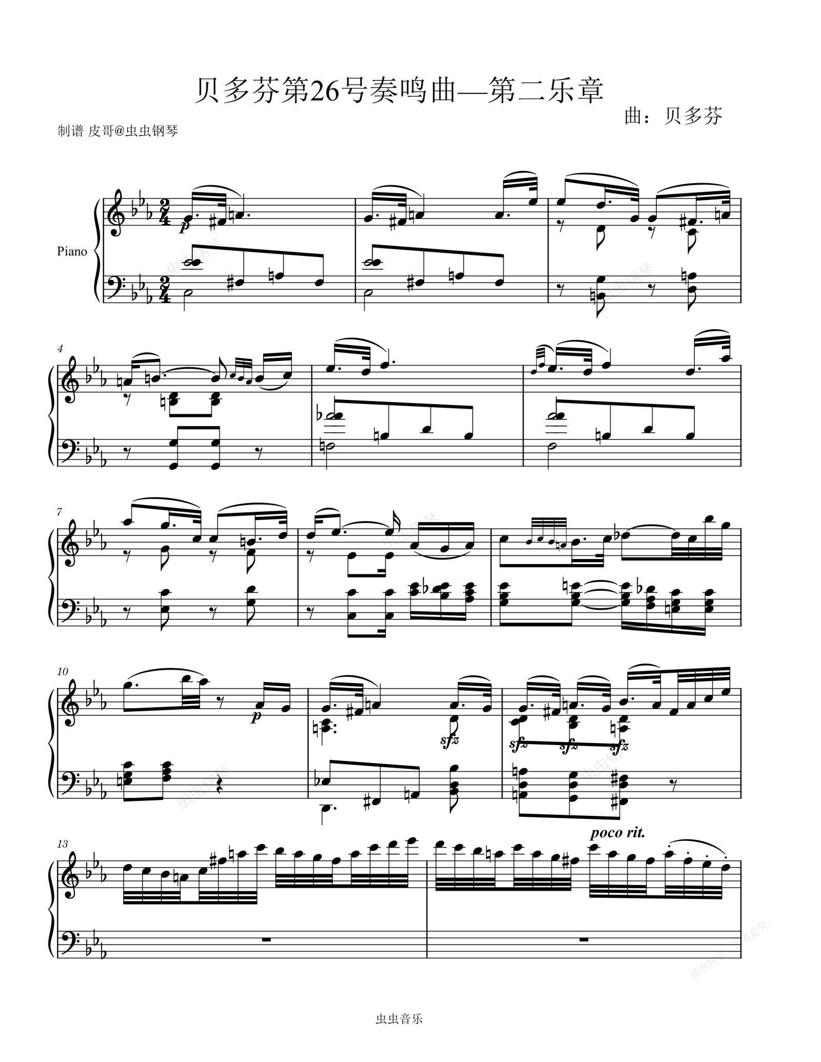 钢琴谱:贝多芬第26号奏鸣曲—第二乐章 降E大调 原版钢琴谱