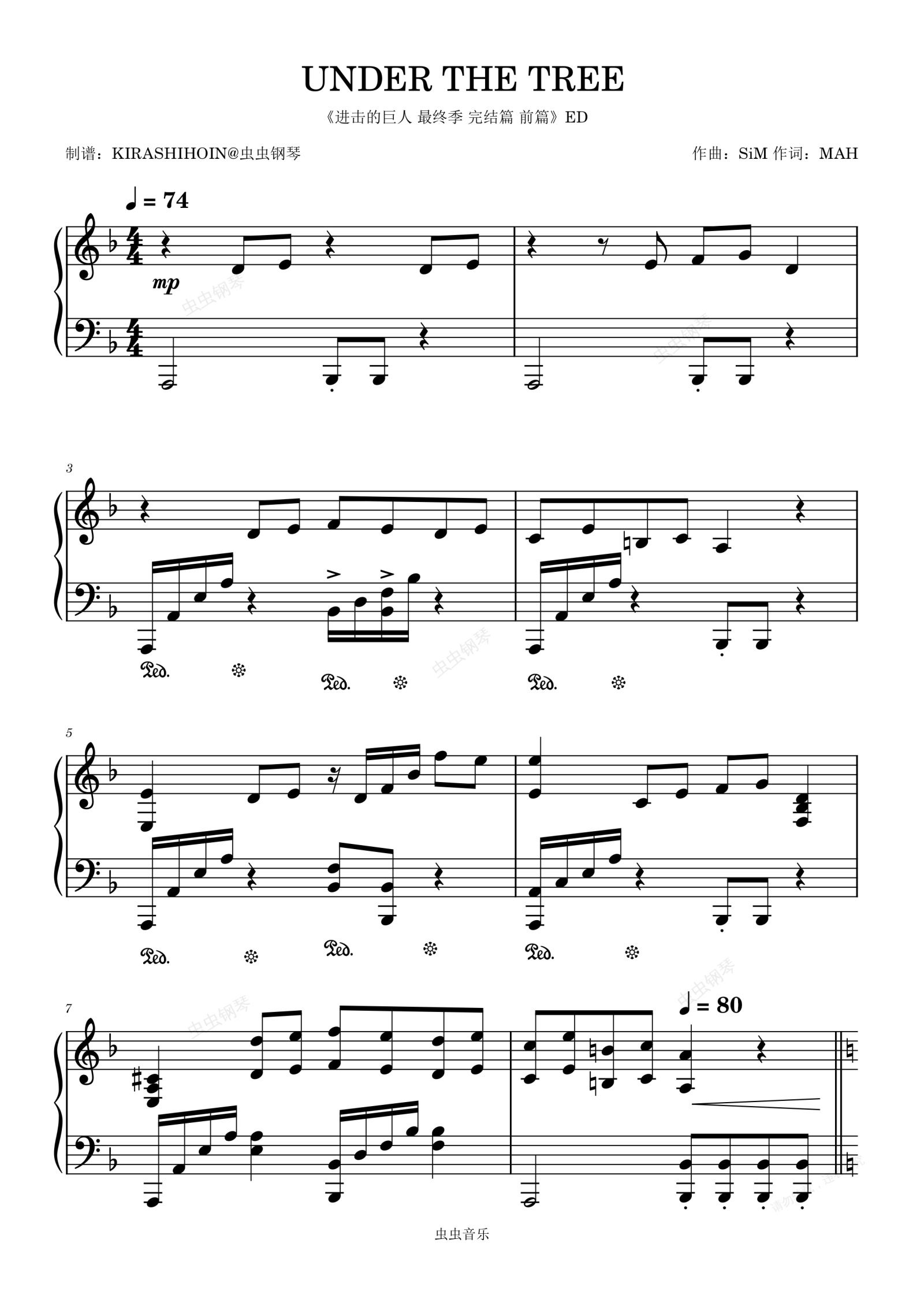 钢琴谱:UNDER THE TREE(《进击的巨人 最终季 完结篇 前篇》ED/片尾曲)- SiM