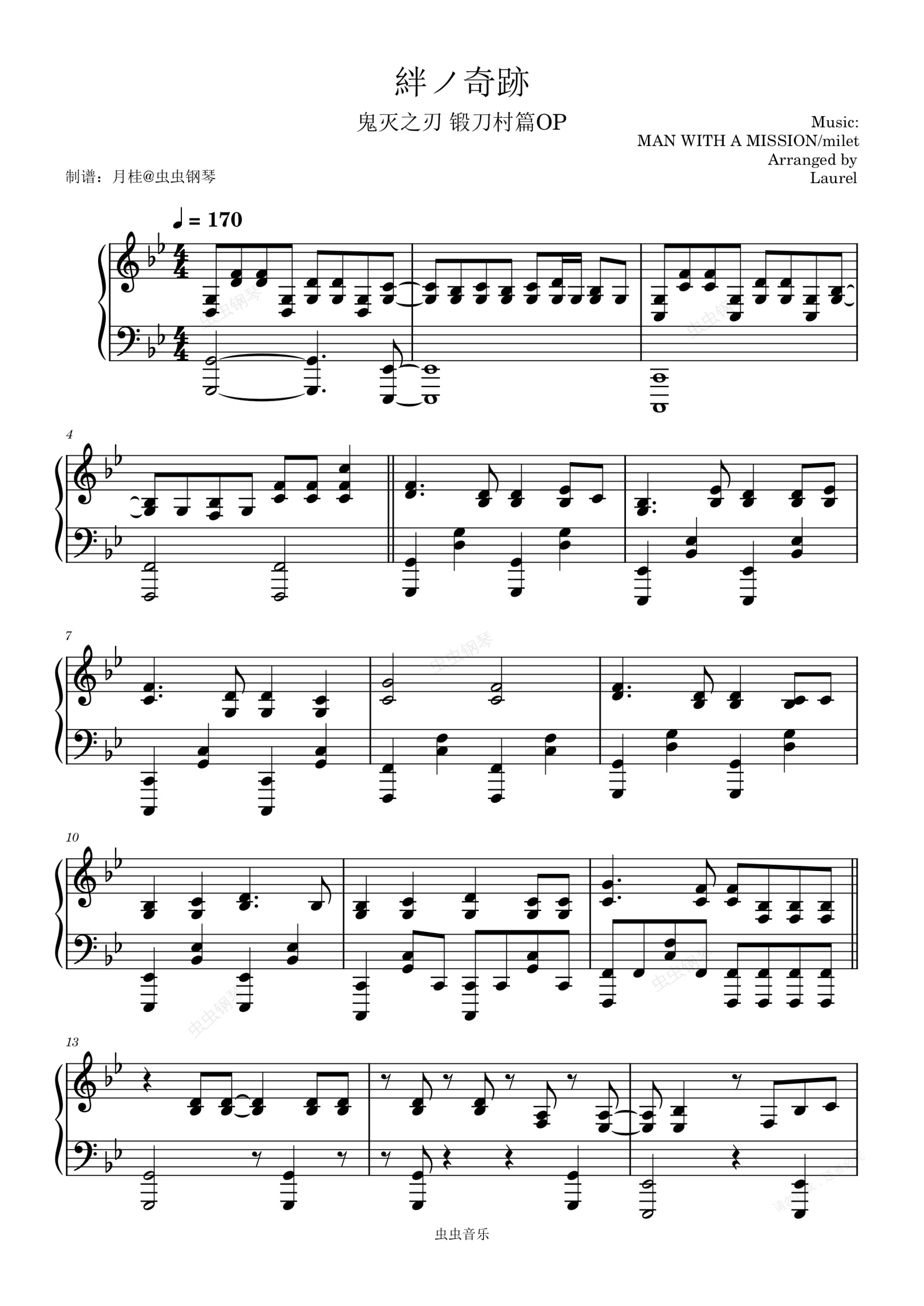 钢琴谱:絆ノ奇跡-鬼灭之刃 锻刀村篇 片头曲