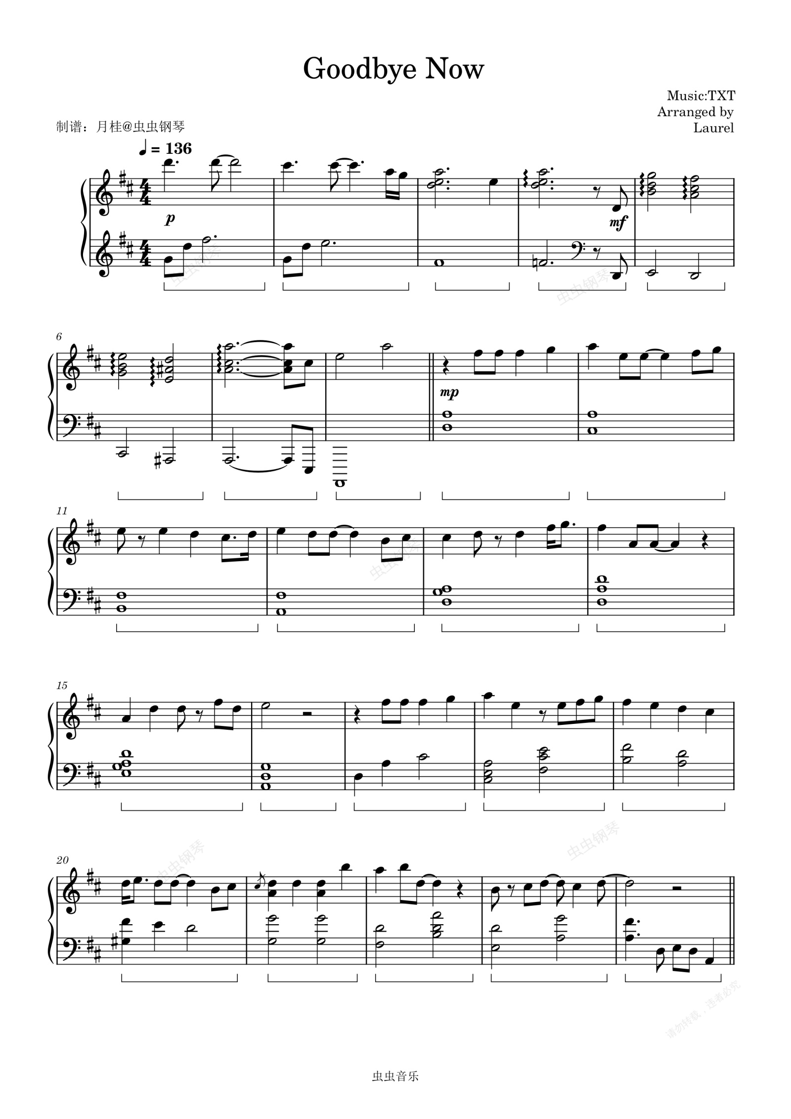 钢琴谱:Goodbye Now-TXT组合演唱歌曲 网络漫画《恋爱革命》OST
