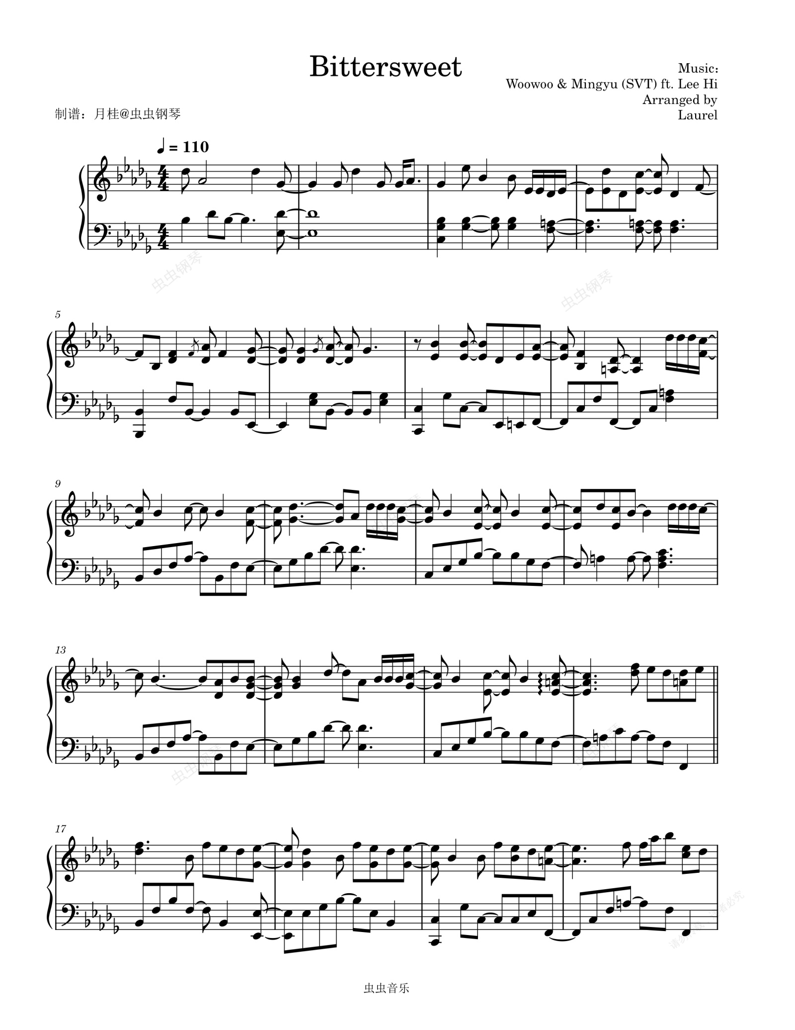 钢琴谱:Bittersweet-SEVENTEEN成员圆佑 /珉奎 单曲