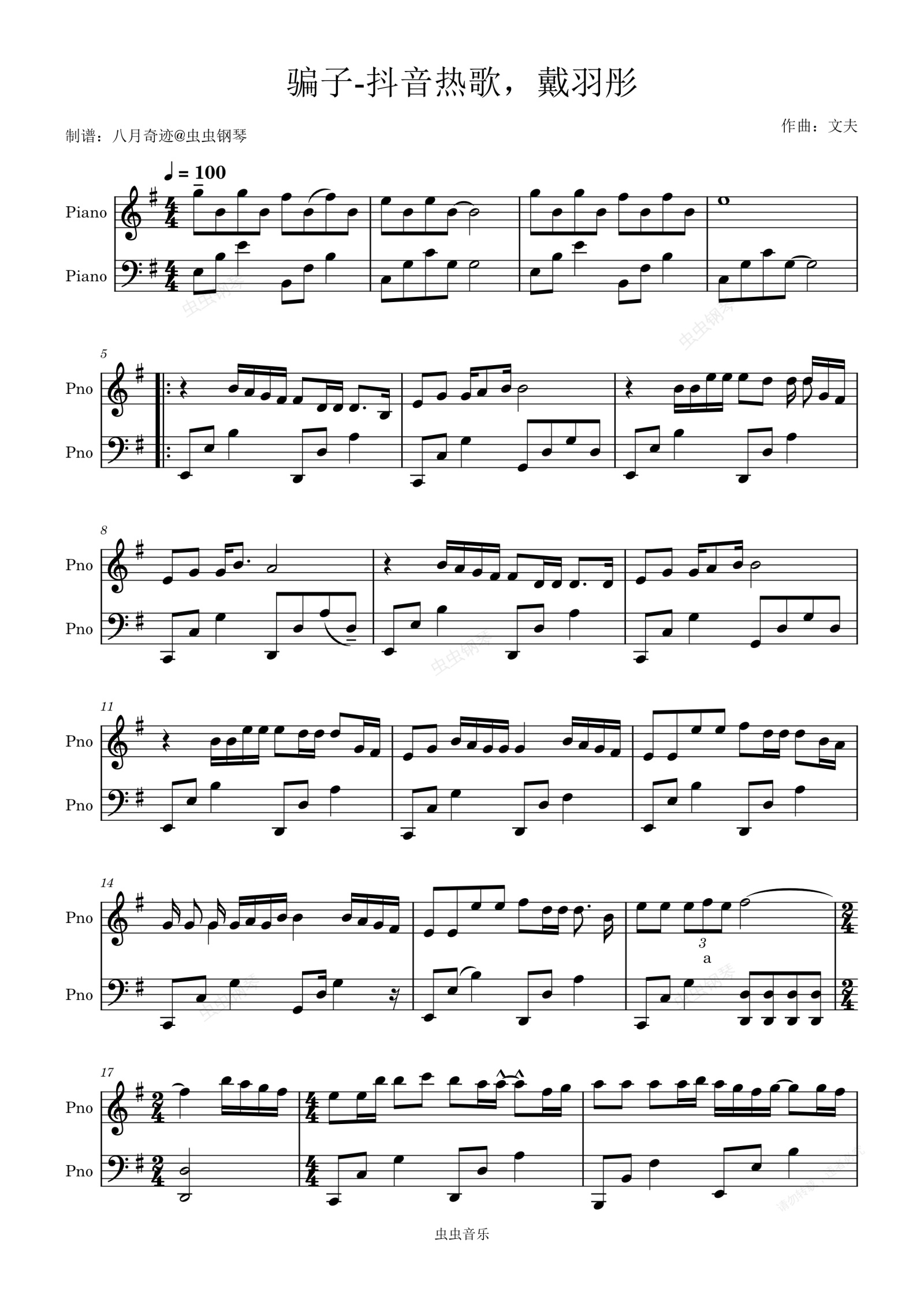 钢琴谱:骗子-戴羽彤抖音
