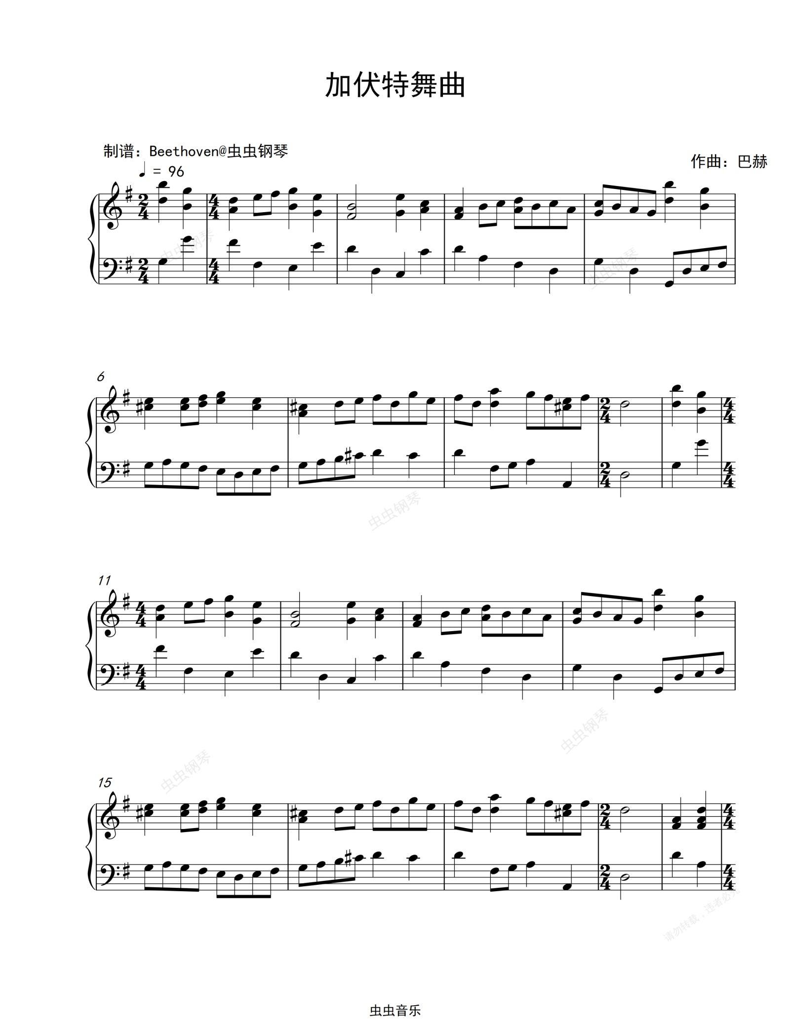 钢琴谱:加伏特舞曲 23-巴赫初级钢琴曲集