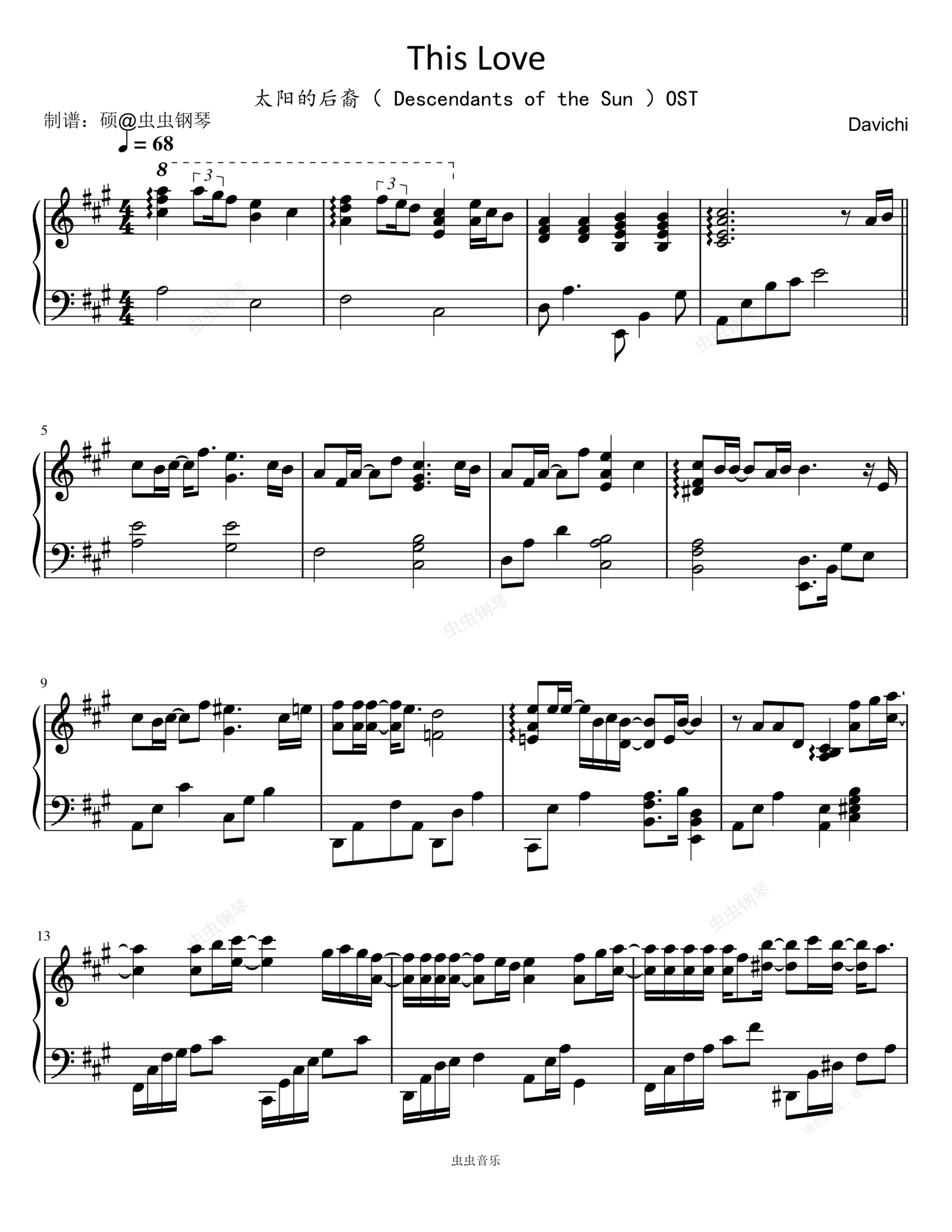 钢琴谱:이 사랑(这份爱) (《太阳的后裔》韩剧插曲)