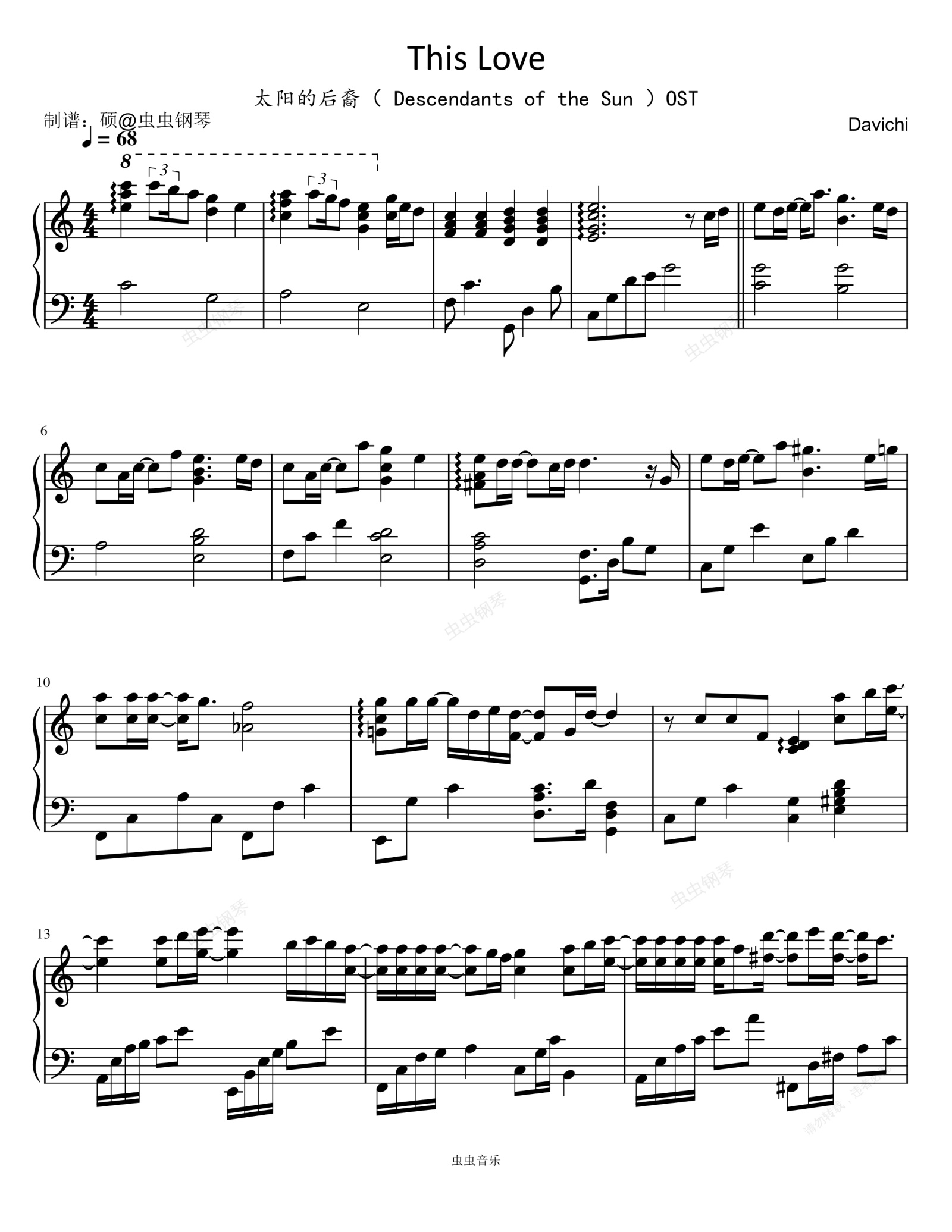 钢琴谱:이 사랑(这份爱) (《太阳的后裔》韩剧插曲)