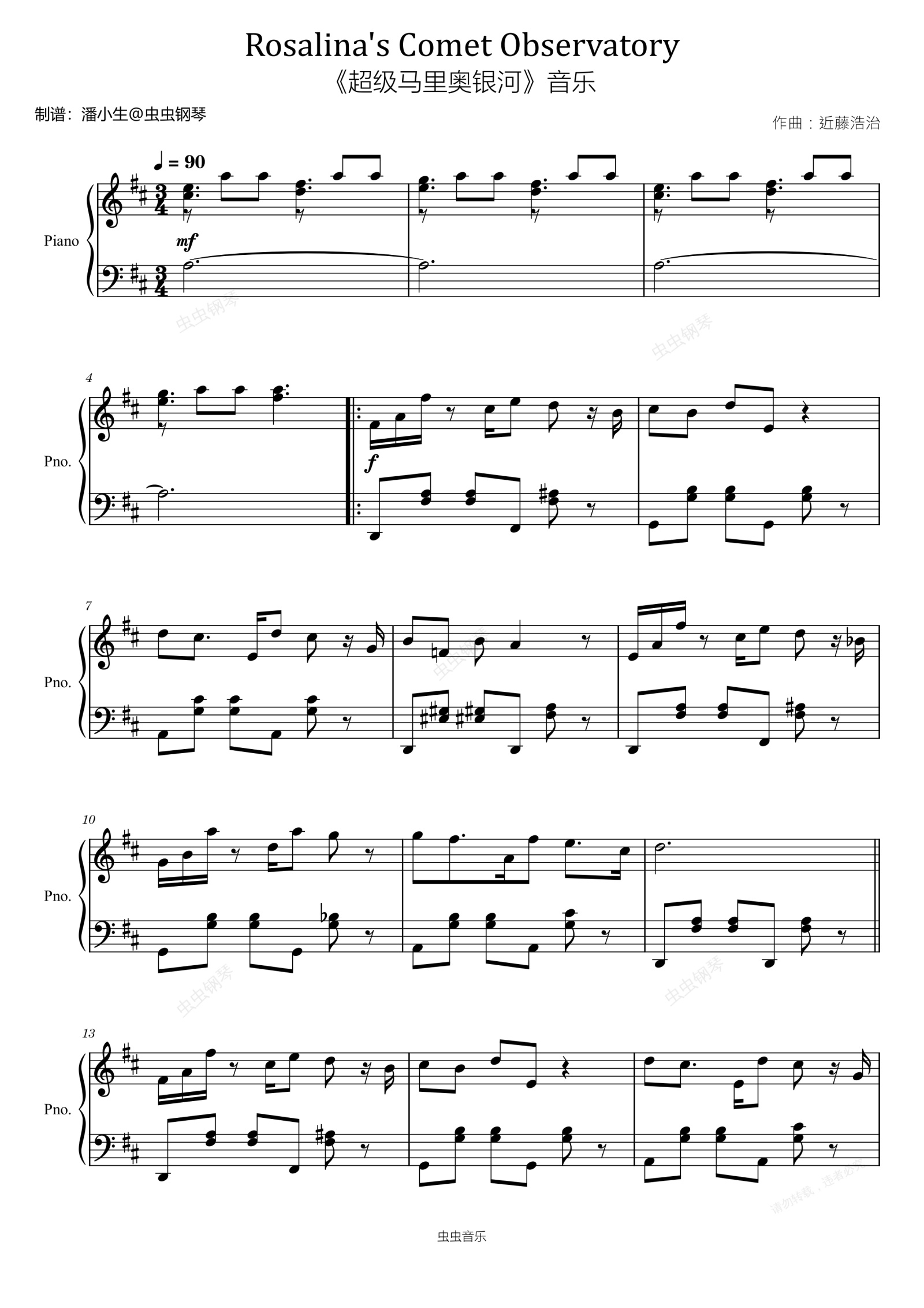 钢琴谱:Rosalina's Comet Observatory 《超级马里奥银河》音乐 独奏版 Super Mario Galaxy
