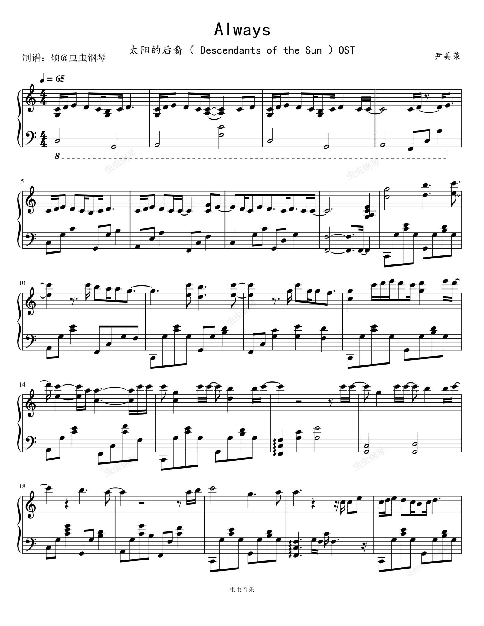 钢琴谱:ALWAYS (《太阳的后裔》韩剧插曲)