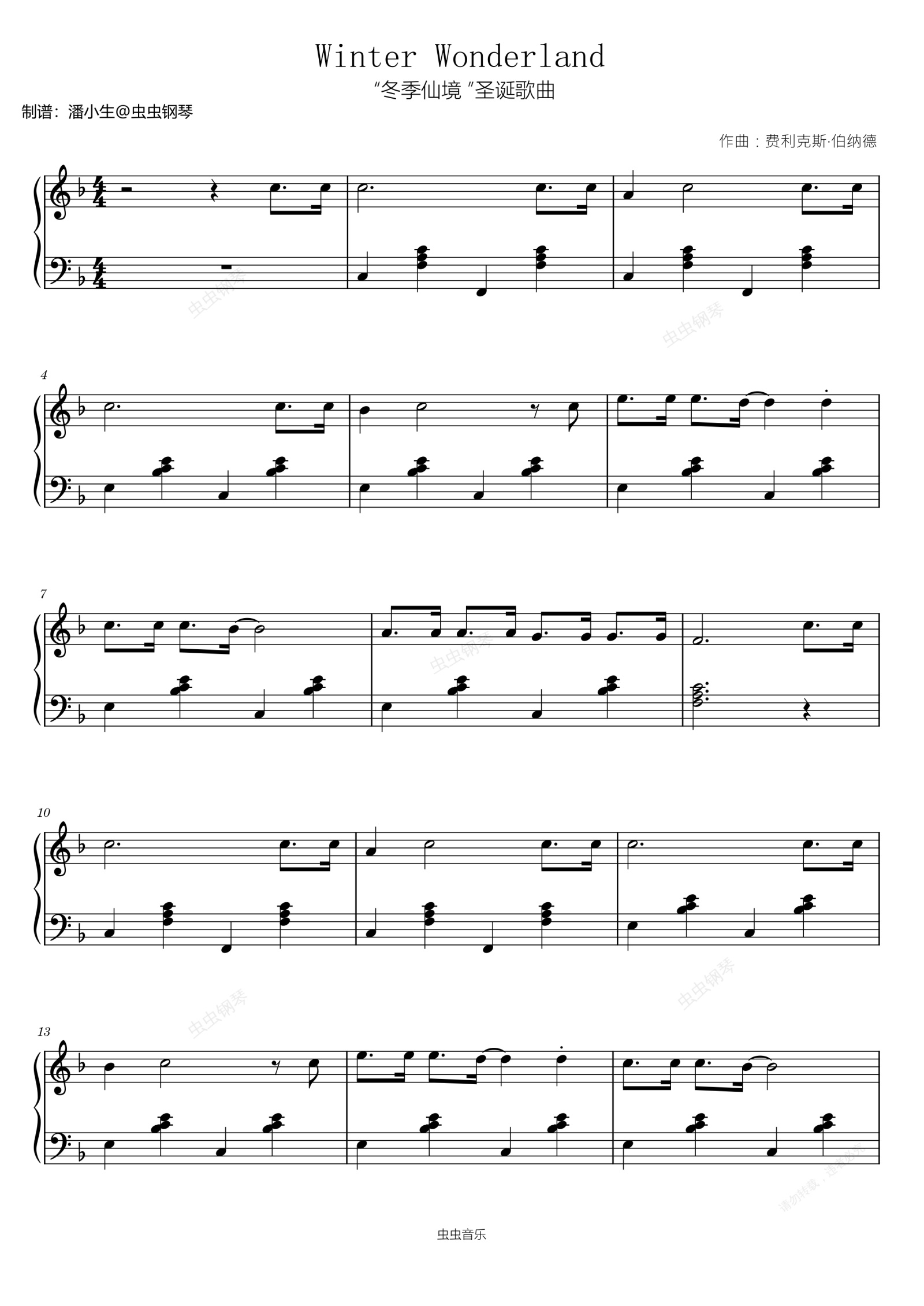 钢琴谱:Winter Wonderland 冬季仙境 圣诞歌曲 独奏 简单版