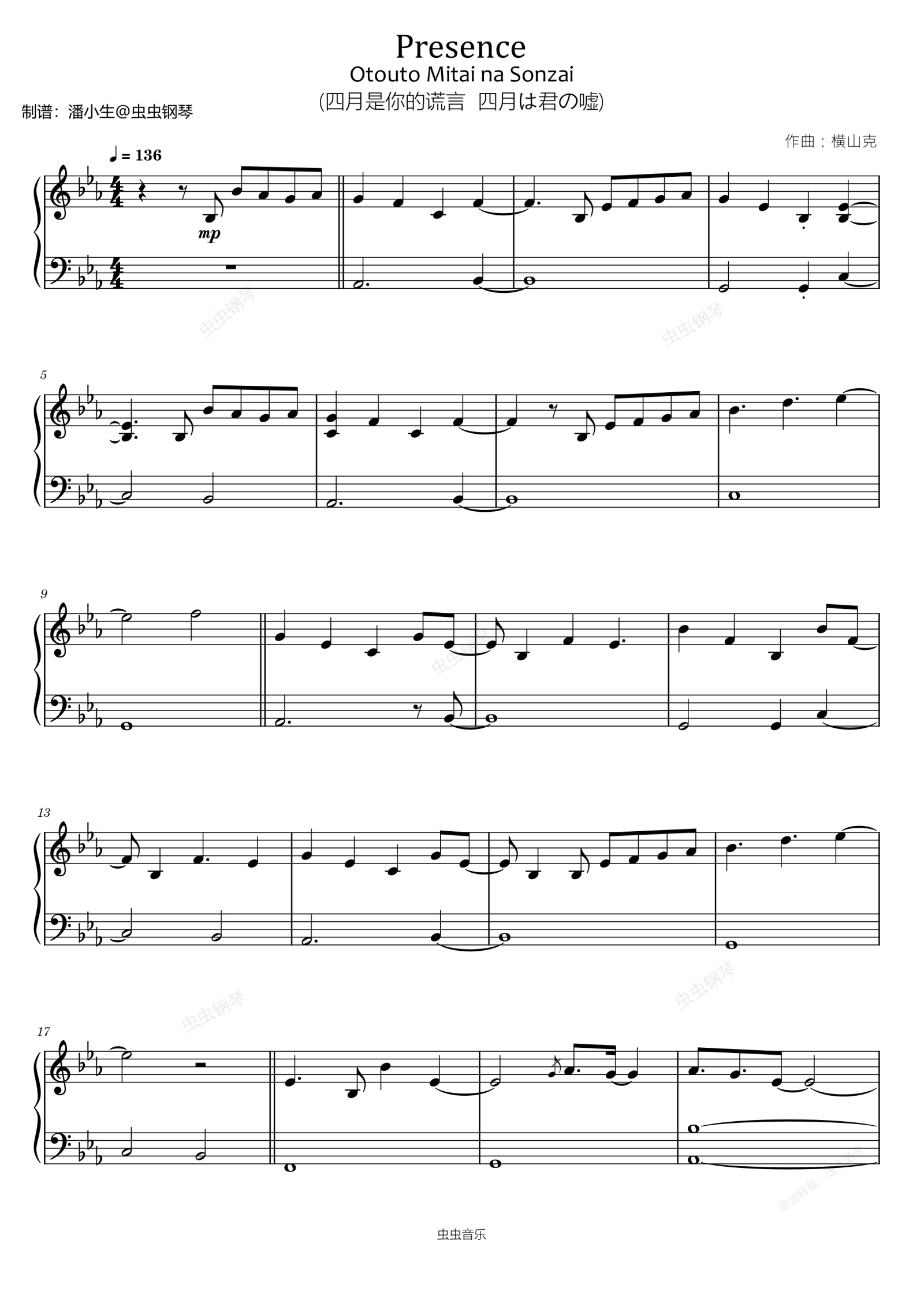 钢琴谱:Presence 四月是你的谎言 Otouto Mitai na Sonzai 四月は君の嘘
