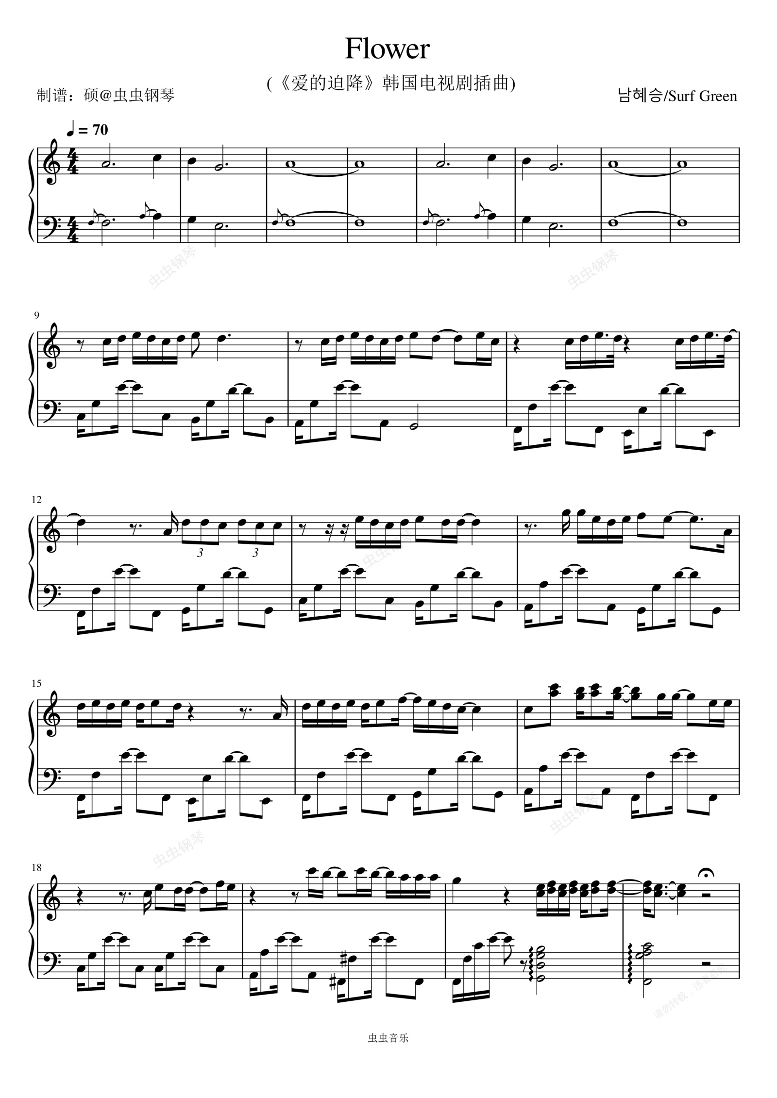 钢琴谱:Flower (《爱的迫降》韩国电视剧插曲) - 尹美莱 (윤미래)