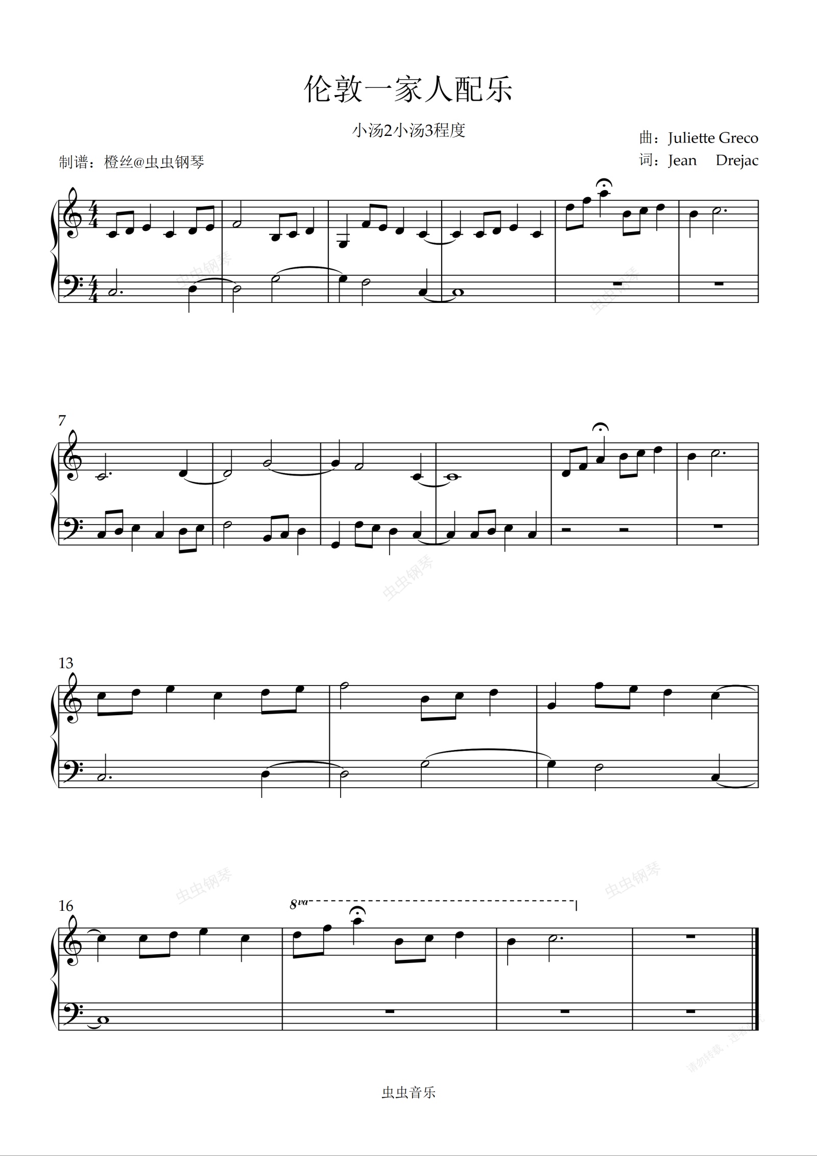 钢琴谱:伦敦一家人配乐(小汤2,小汤3程度)