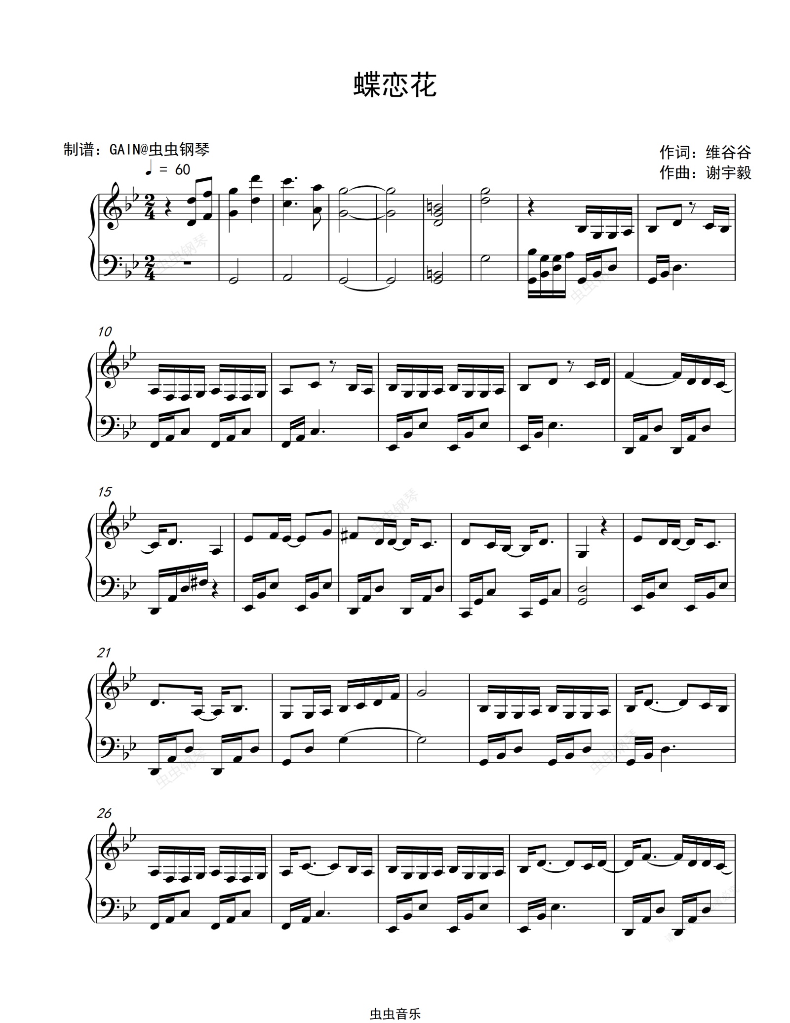 钢琴谱:蝶恋花-天龙八部主题曲-邓紫棋