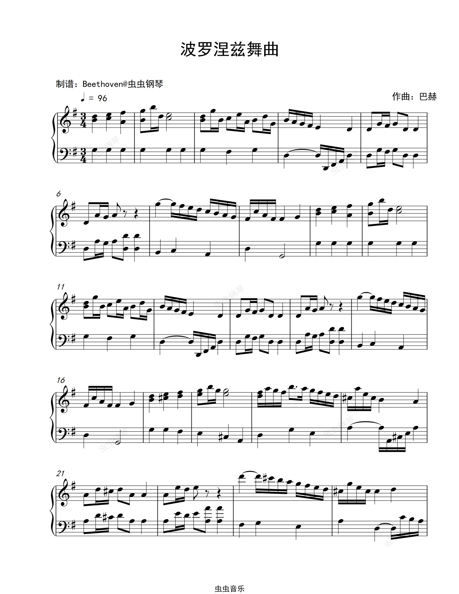 钢琴谱:波罗涅兹舞曲-19-巴赫初级钢琴曲集