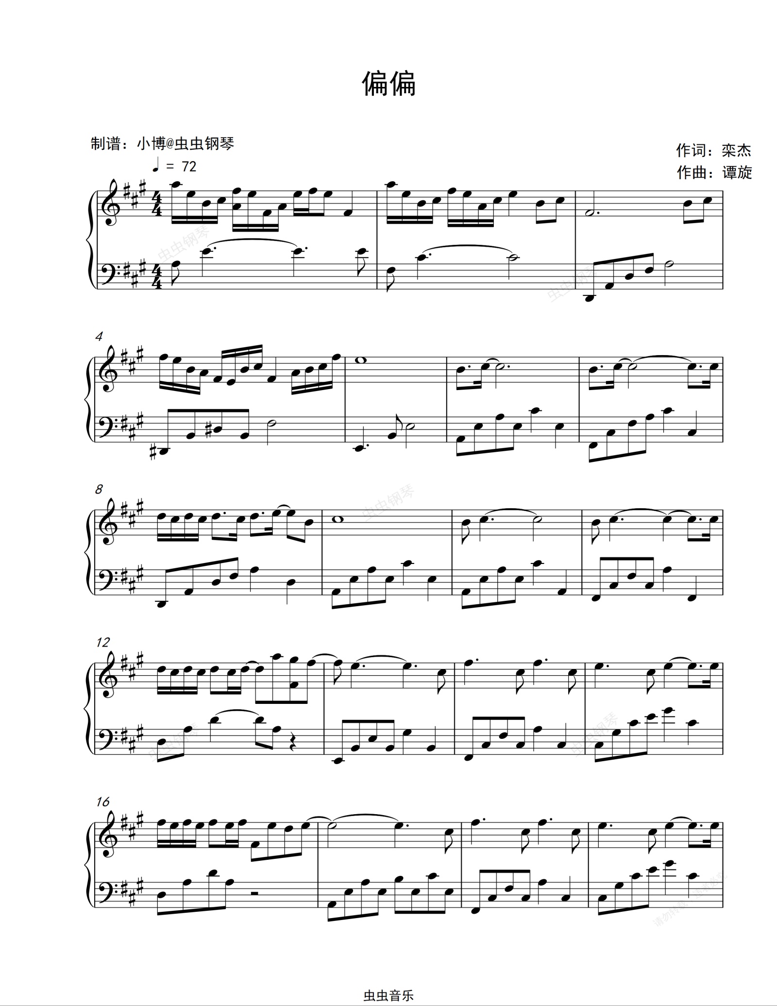 钢琴谱:偏偏-三生三世枕上书片尾曲-迪丽热巴 汪苏泷