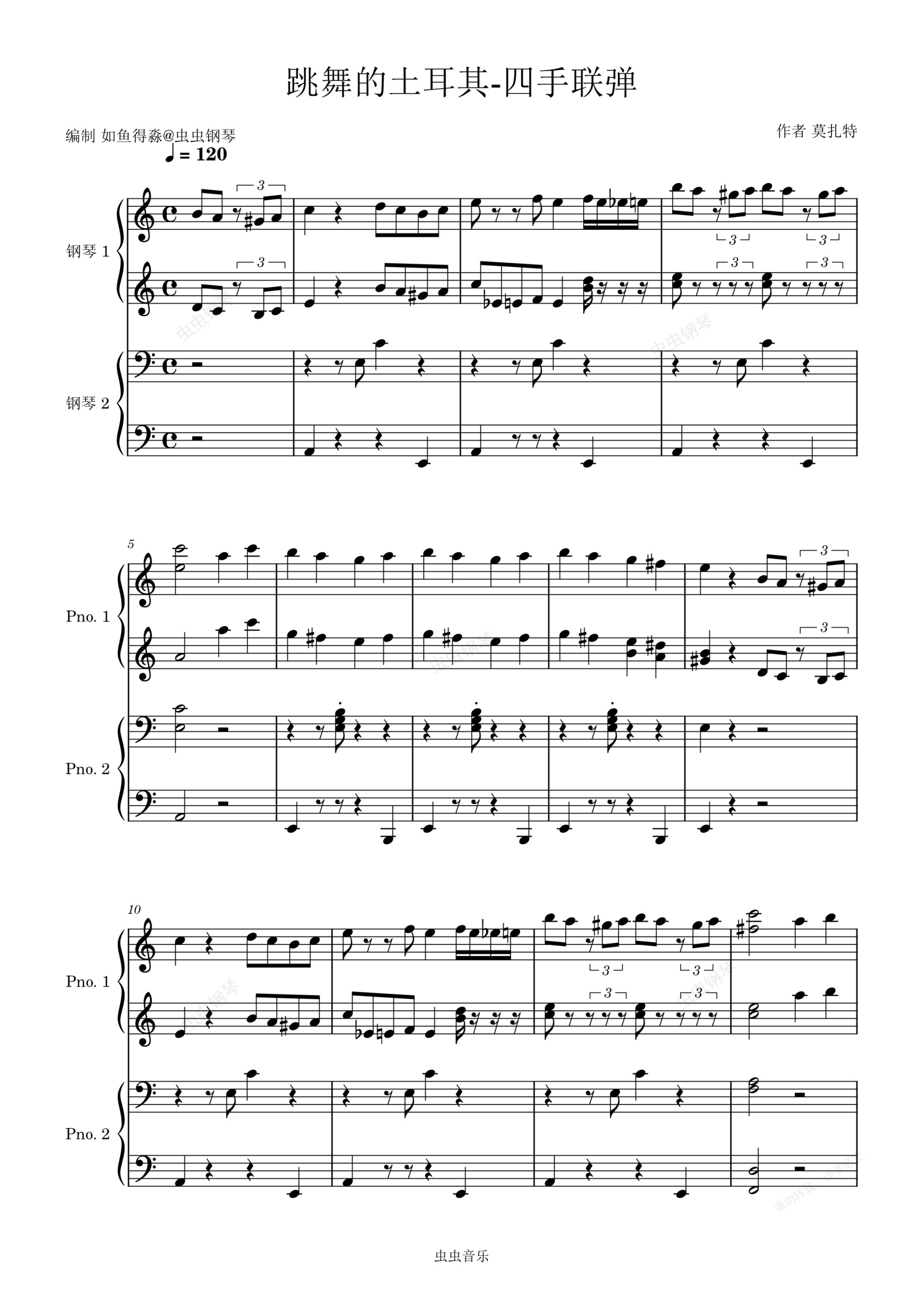 钢琴谱:跳舞的土耳其-四手联弹