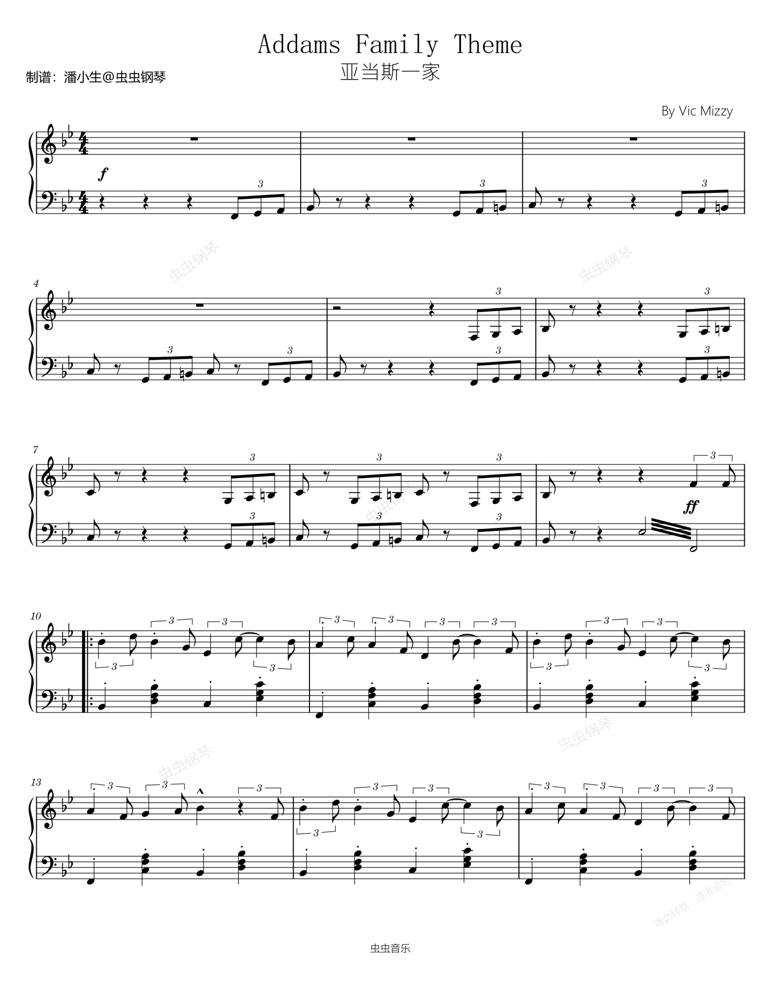 钢琴谱:Addams Family Theme 亚当斯一家 简单独奏版