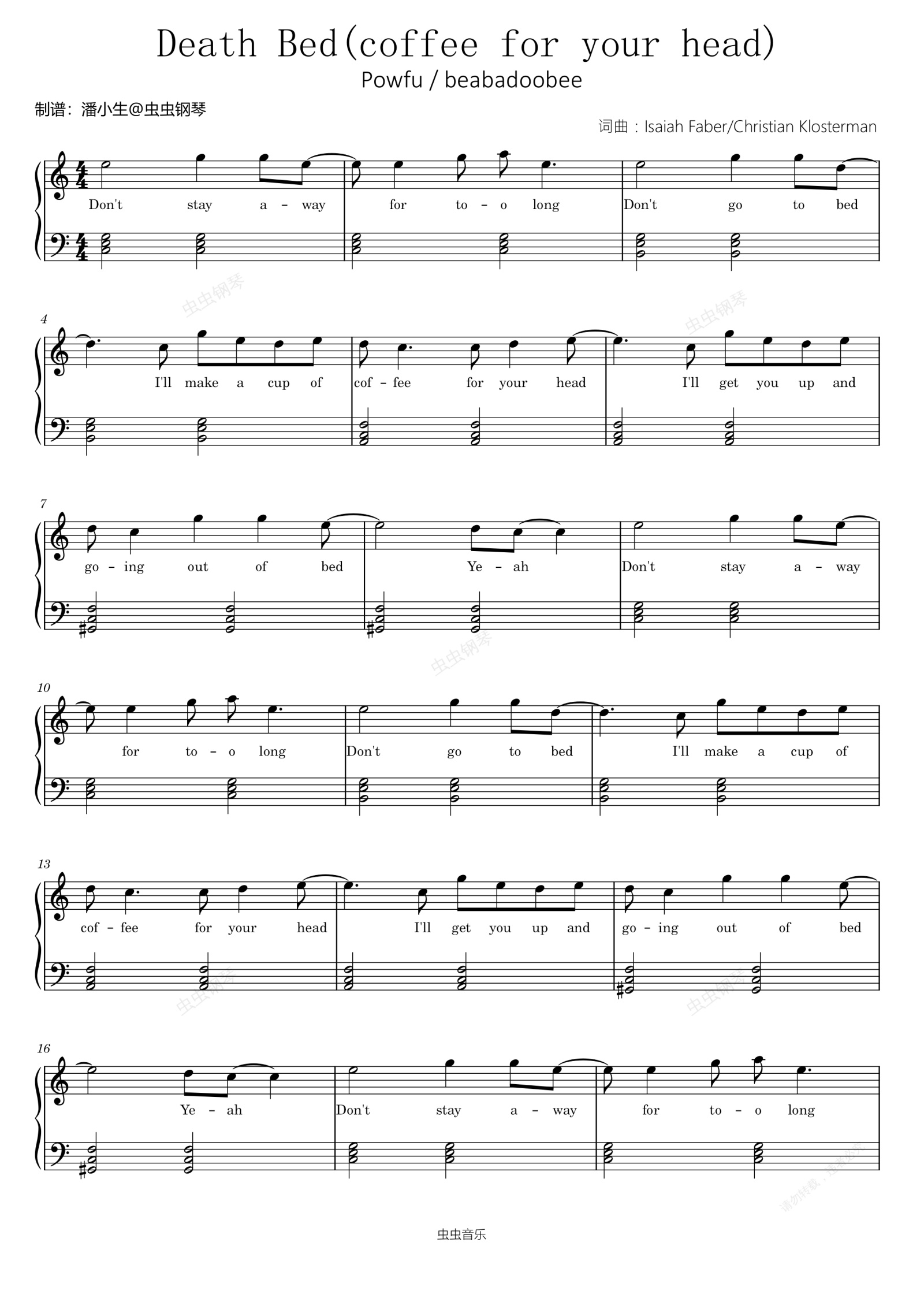 钢琴谱:death bed (coffee for your head) 简单独奏版 带歌词 Powfu