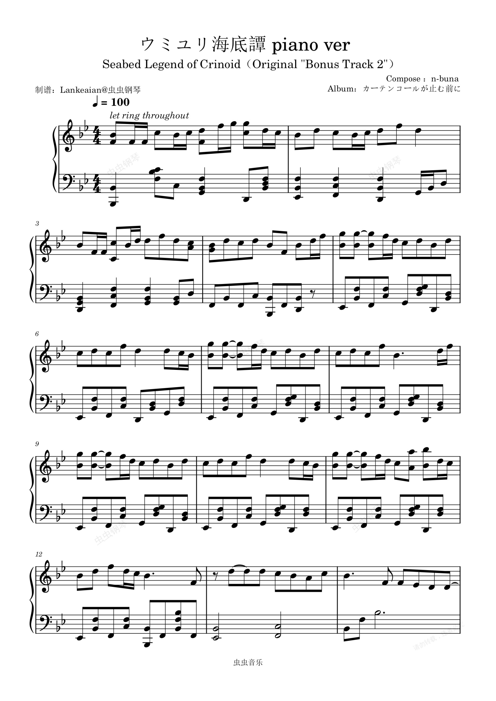 钢琴谱:ウミユリ海底譚 piano ver.(ボーナストラック2)