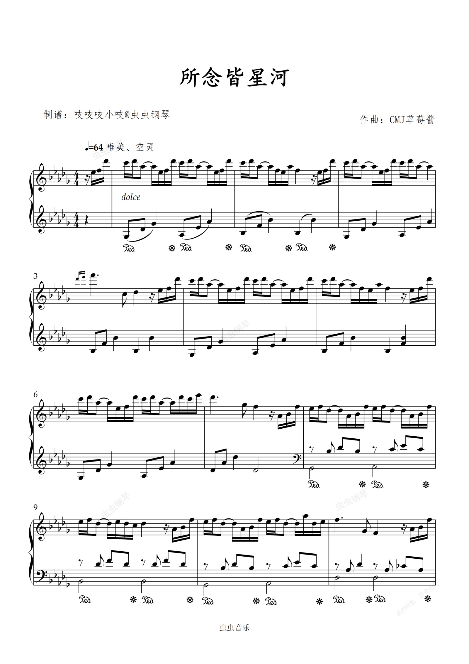 钢琴谱:所念皆星河 原调原版 bD-D-bE【有伴奏】