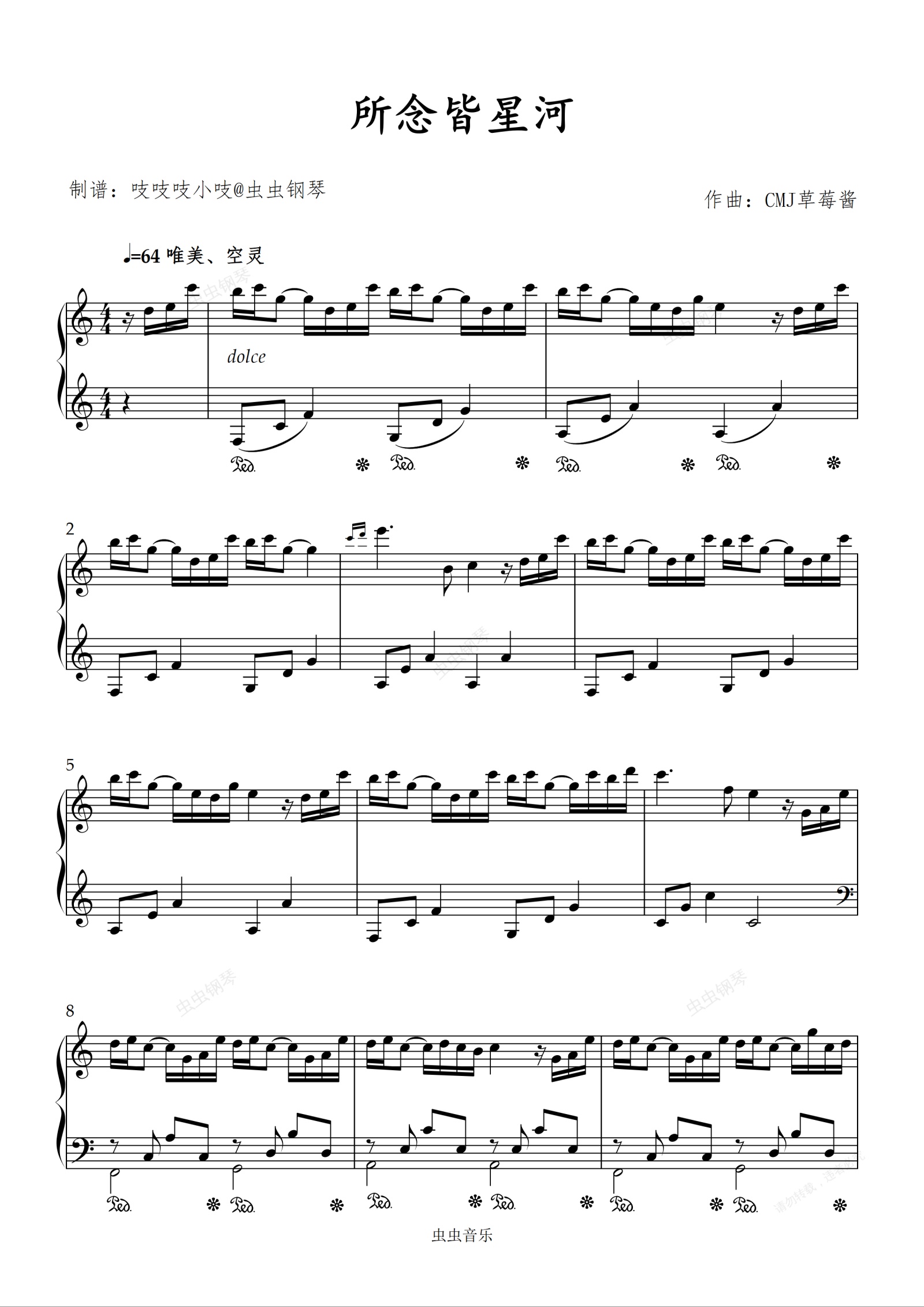钢琴谱:所念皆星河 C调原版简化 【有伴奏】无升调