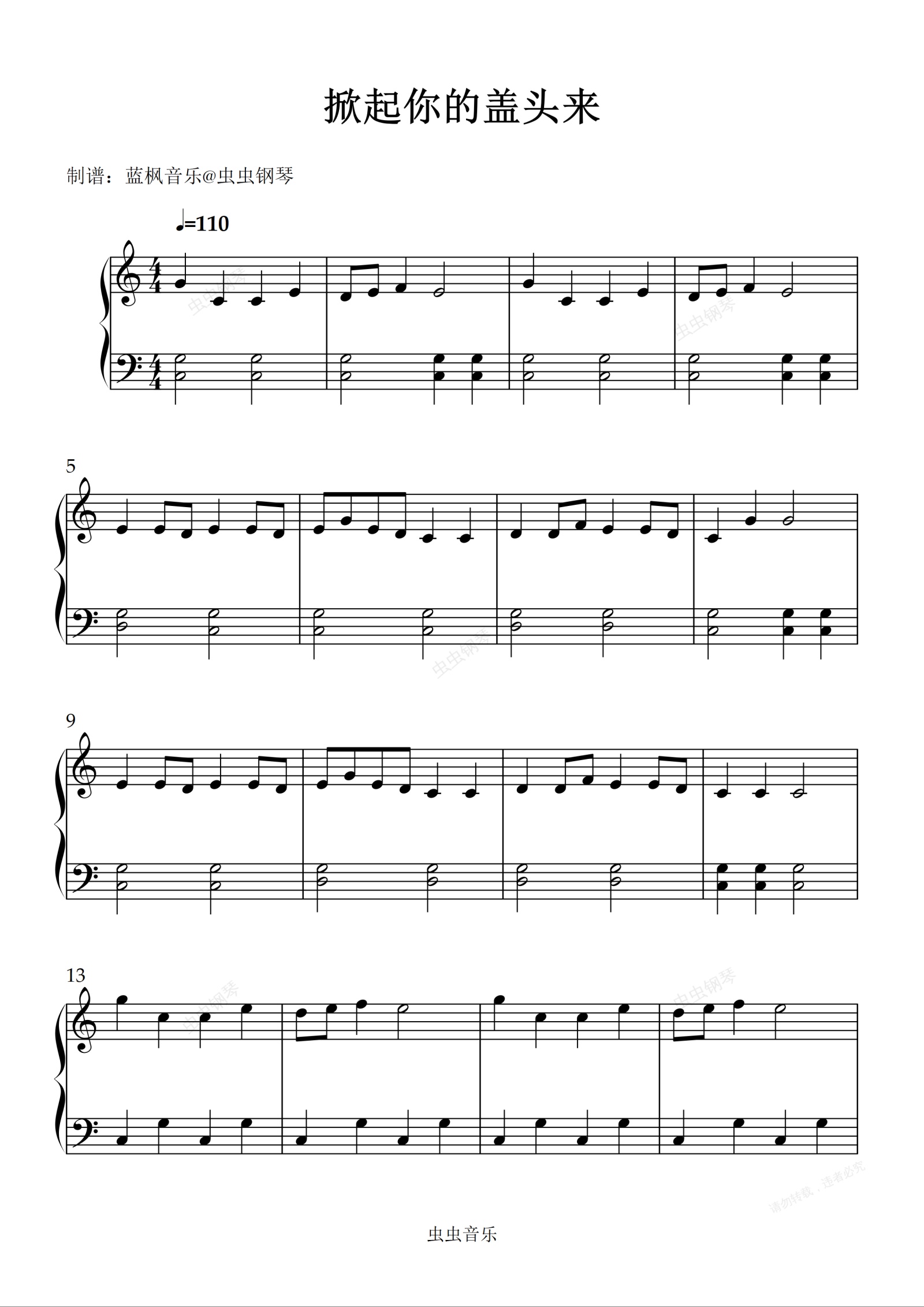 钢琴谱:掀起你的盖头来