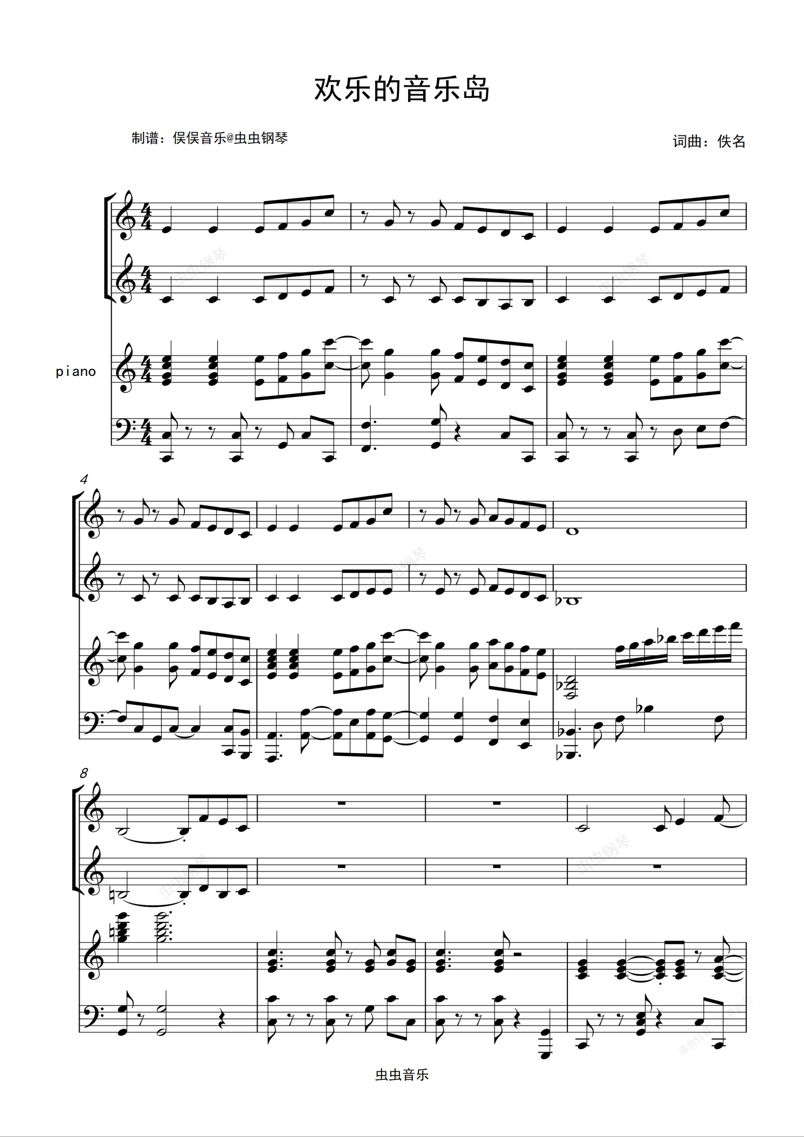 钢琴谱:欢乐的音乐岛(合唱伴奏谱)