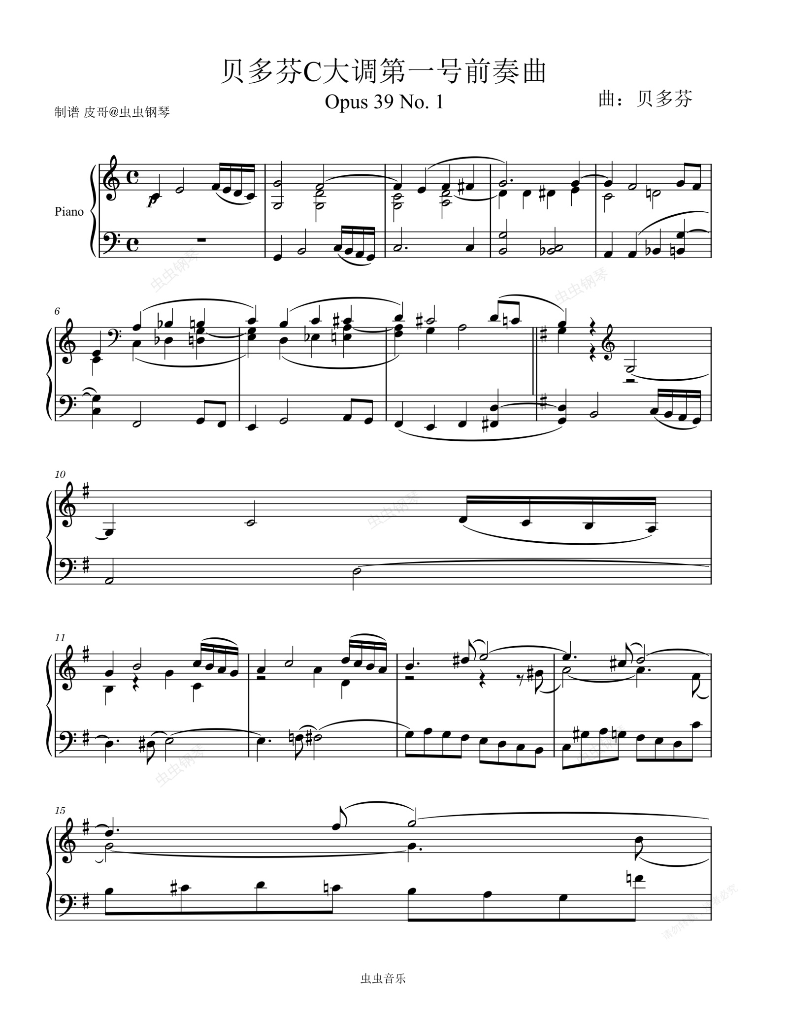 钢琴谱:贝多芬C大调第一号前奏曲 原版钢琴谱