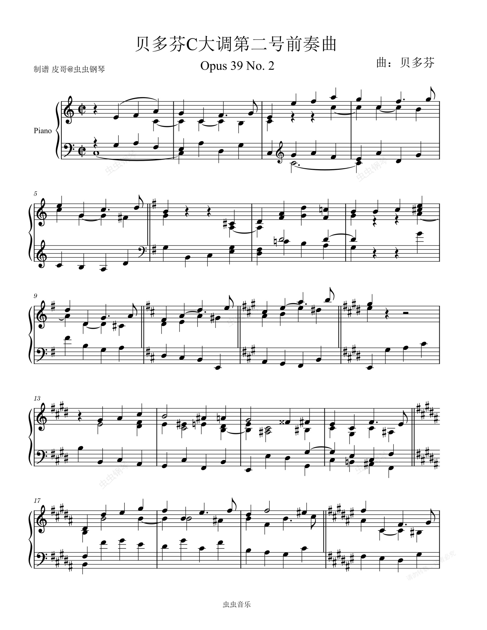 钢琴谱:贝多芬C大调第二号前奏曲 原版钢琴谱