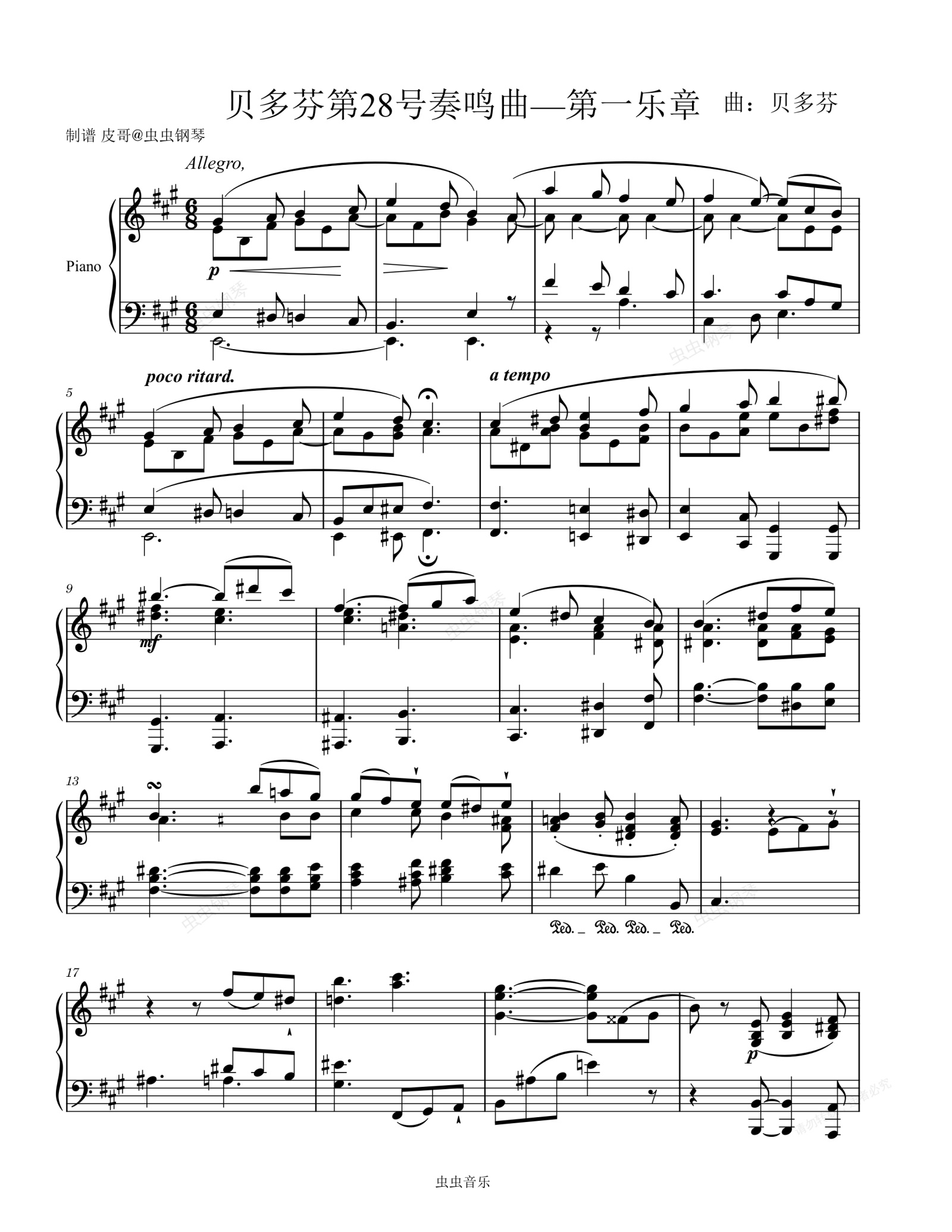 钢琴谱:贝多芬第28号奏鸣曲—第一乐章 A大调 原版钢琴谱