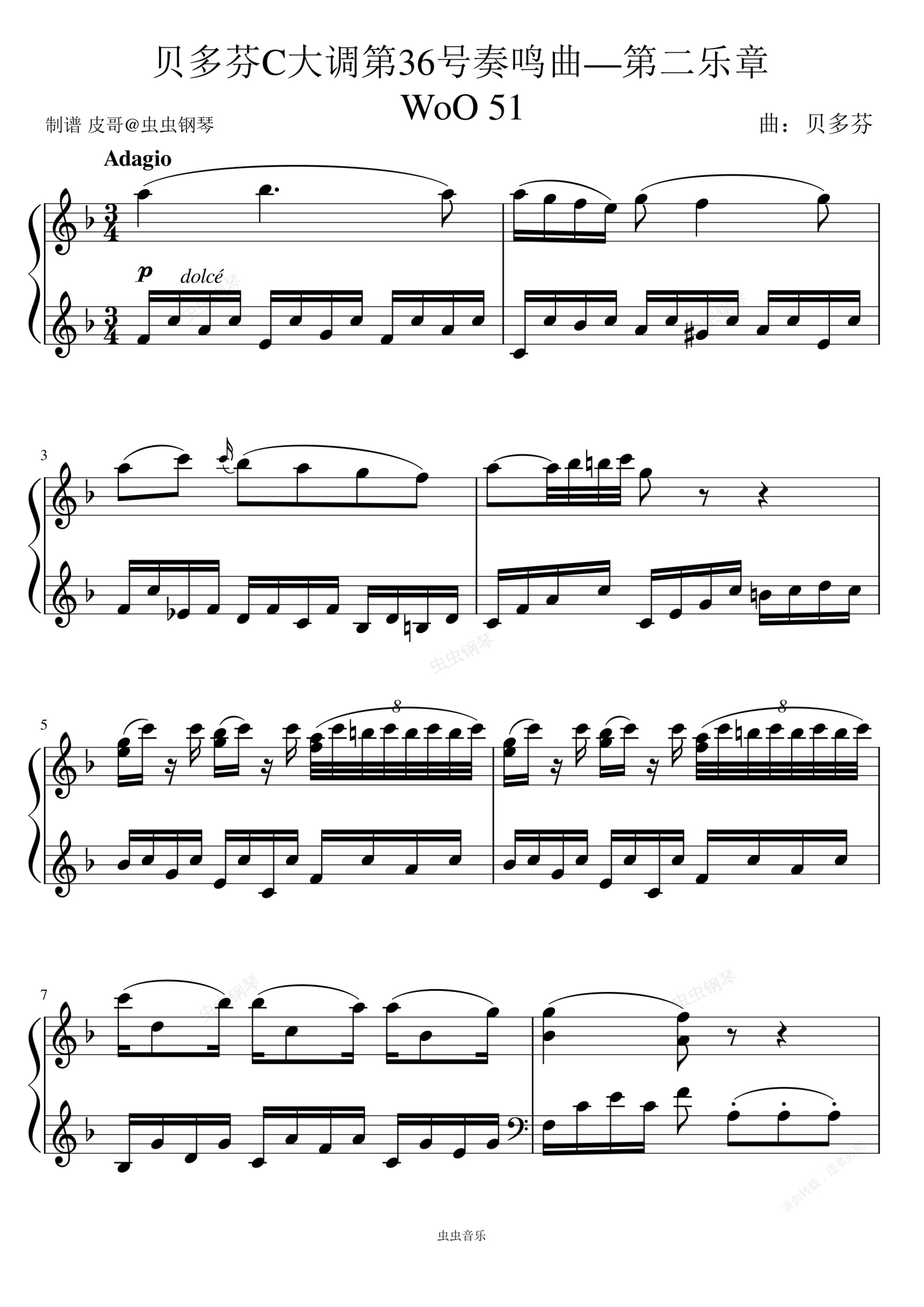 钢琴谱:贝多芬C大调第36号奏鸣曲—第二乐章 原版钢琴谱
