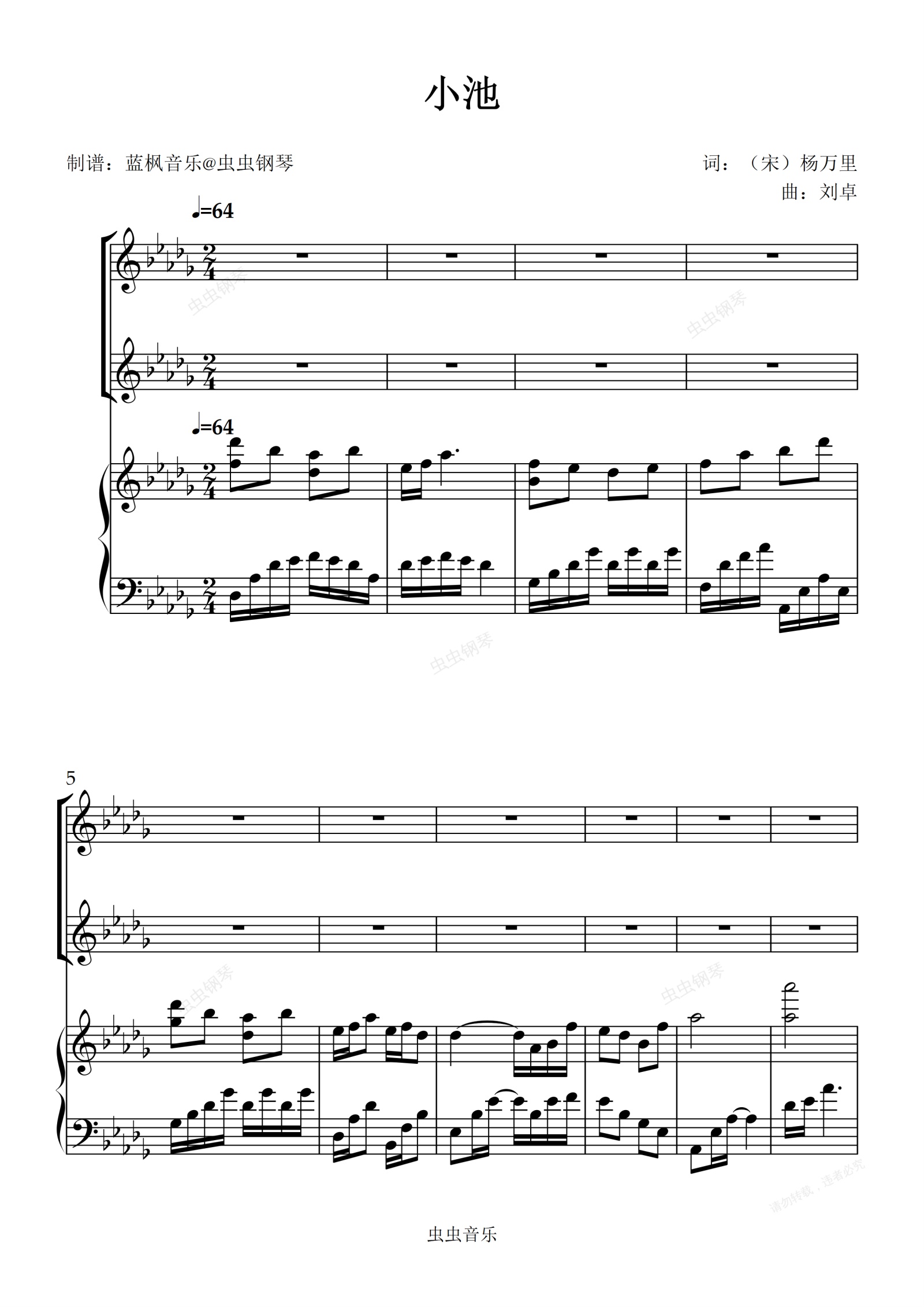 钢琴谱:小池-二声部合唱谱+钢琴伴奏谱