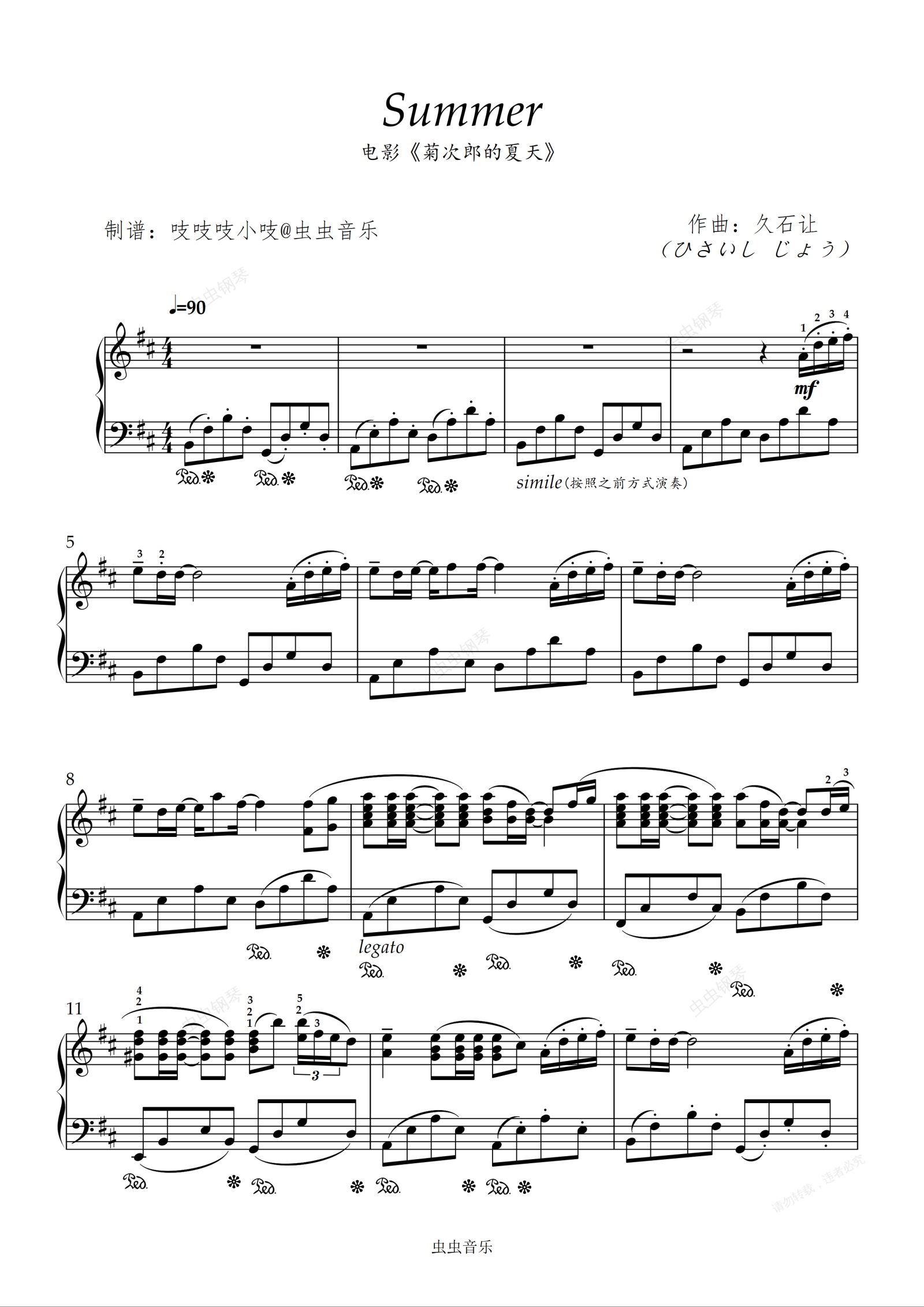 钢琴谱:Summer 原版原调演奏谱 菊次郎的夏天
