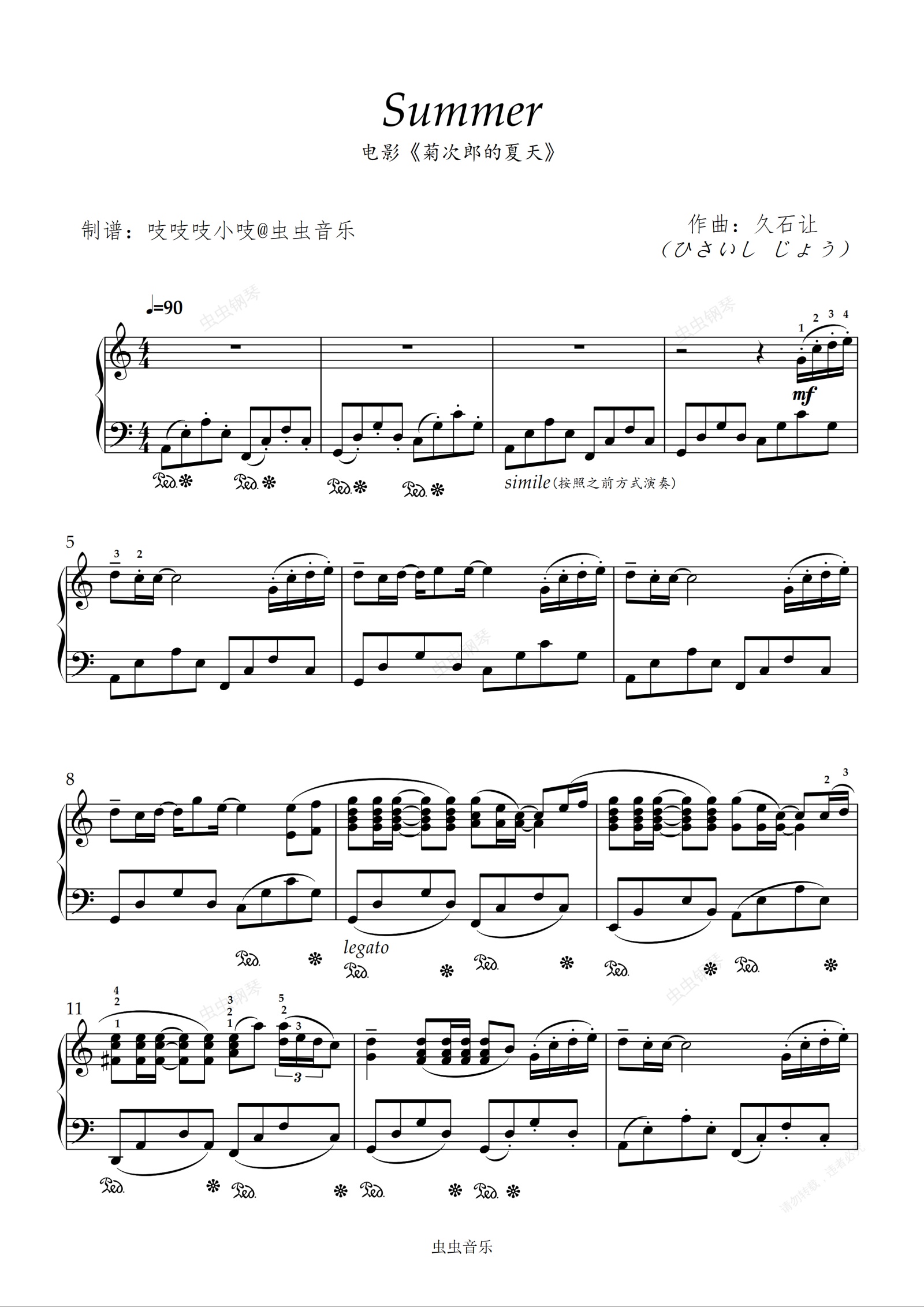 钢琴谱:Summer 原版C调演奏谱 菊次郎的夏天